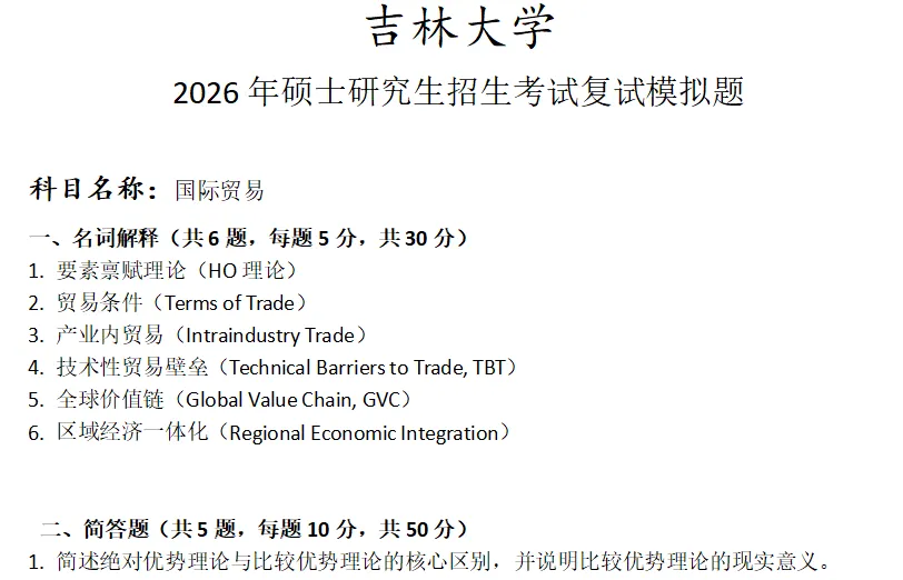 吉林大学国际贸易考研复试真题模拟含答案