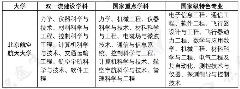 王牌专业:航空宇航科学与技术、仪器科学与技术、材料科学与工程、软件工程、计算机科学与技术、管理科学与工程、生物医学工程、外国语言文学、控制科学与工程、机械工程、信息与工程、数学、力学、光学工程、动力工程、交通运输工程、公共管理等。