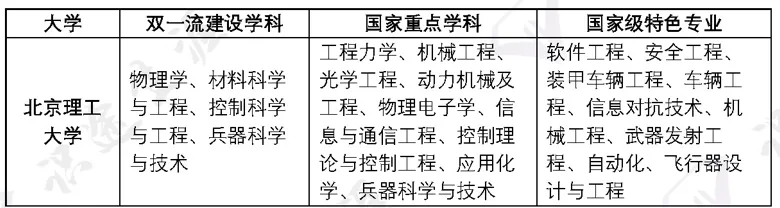 王牌专业:信息与通信工程、兵器科学与技术、控制科学与工程、机械工程、光学工程、计算机科学与技术、材料科学与技术、管理科学与工程、力学、化学工程与技术、数学、物理学、工商管理等。