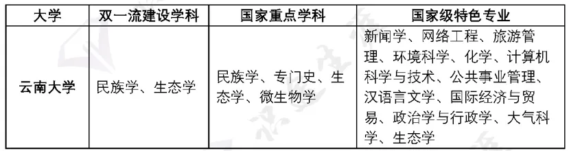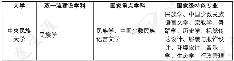 王牌专业:民族学、中国少数民族语言文学、宗教学、舞蹈学、历史学、艺术设计、音乐学、生态学、行政管理等。