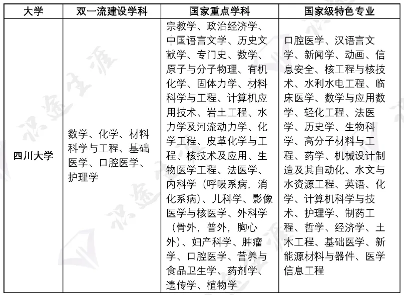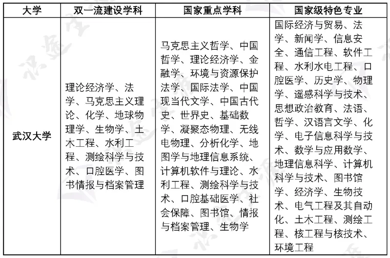 由于该校涉及双一流学科、国家重点学科、国家级特色专业过多,几乎涉及各个学科领域,在此不再列出。