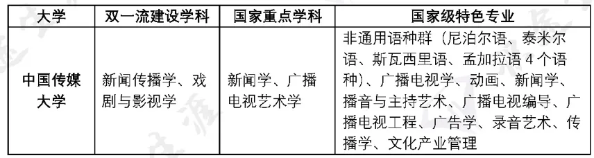 王牌专业:新闻传播学、戏剧与影视学、艺术学理论。