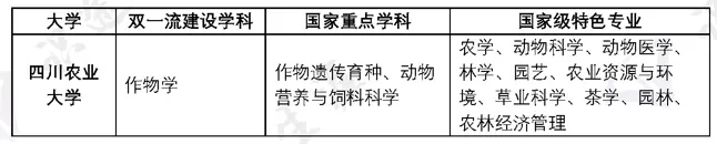 王牌专业:草学、畜牧学、农业工程、食品科学与工程、兽医学、作物学、生物学、 农业资源与环境、植物保护、动物科学、农村区域发展、农林经济管理、食品质量与安全等。