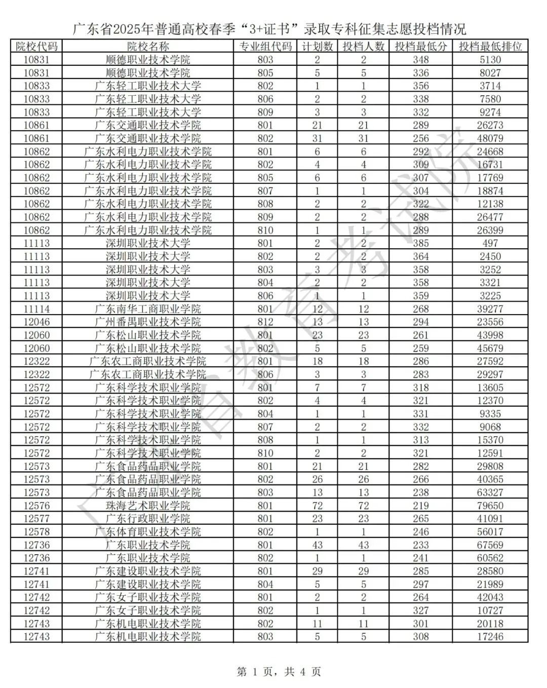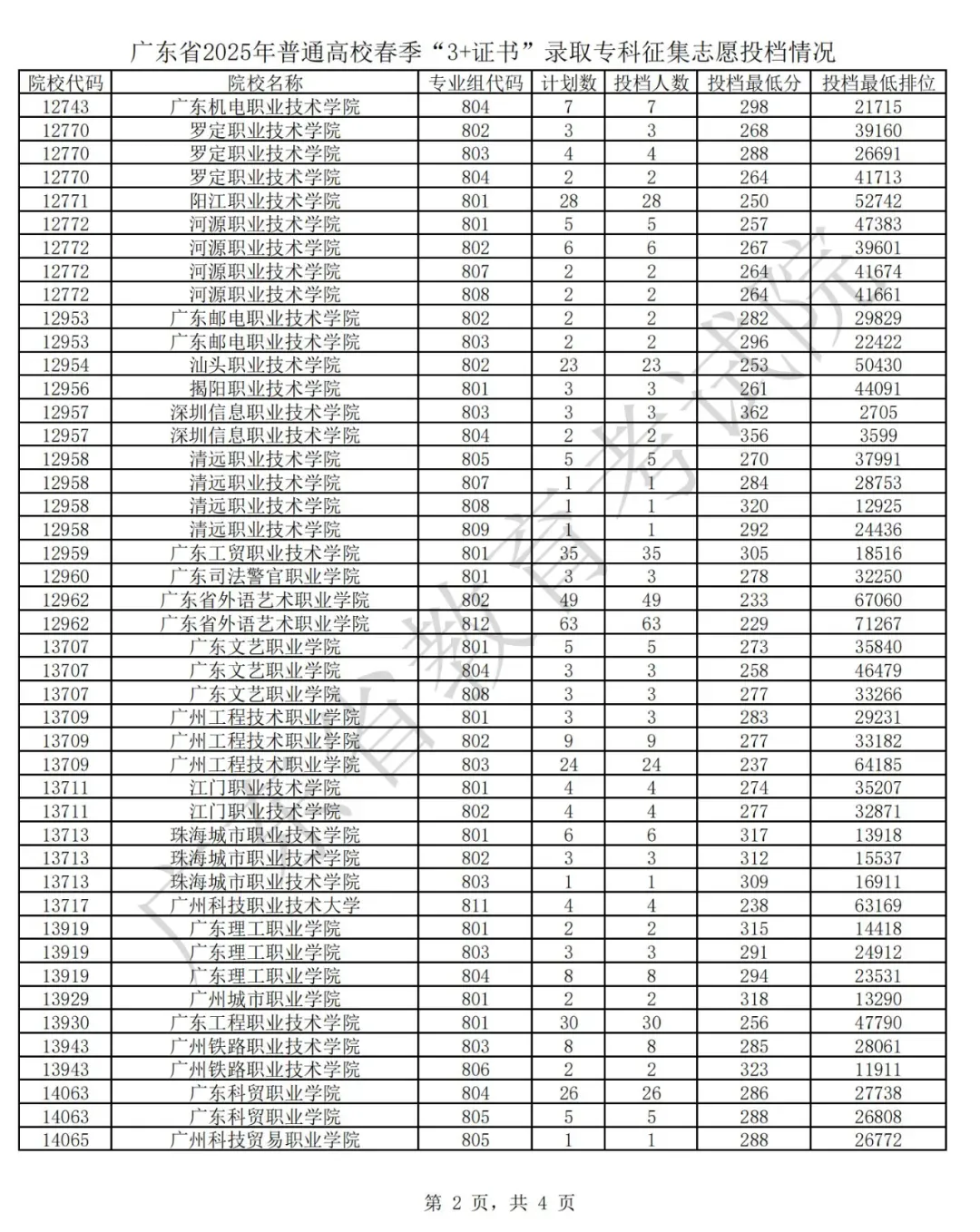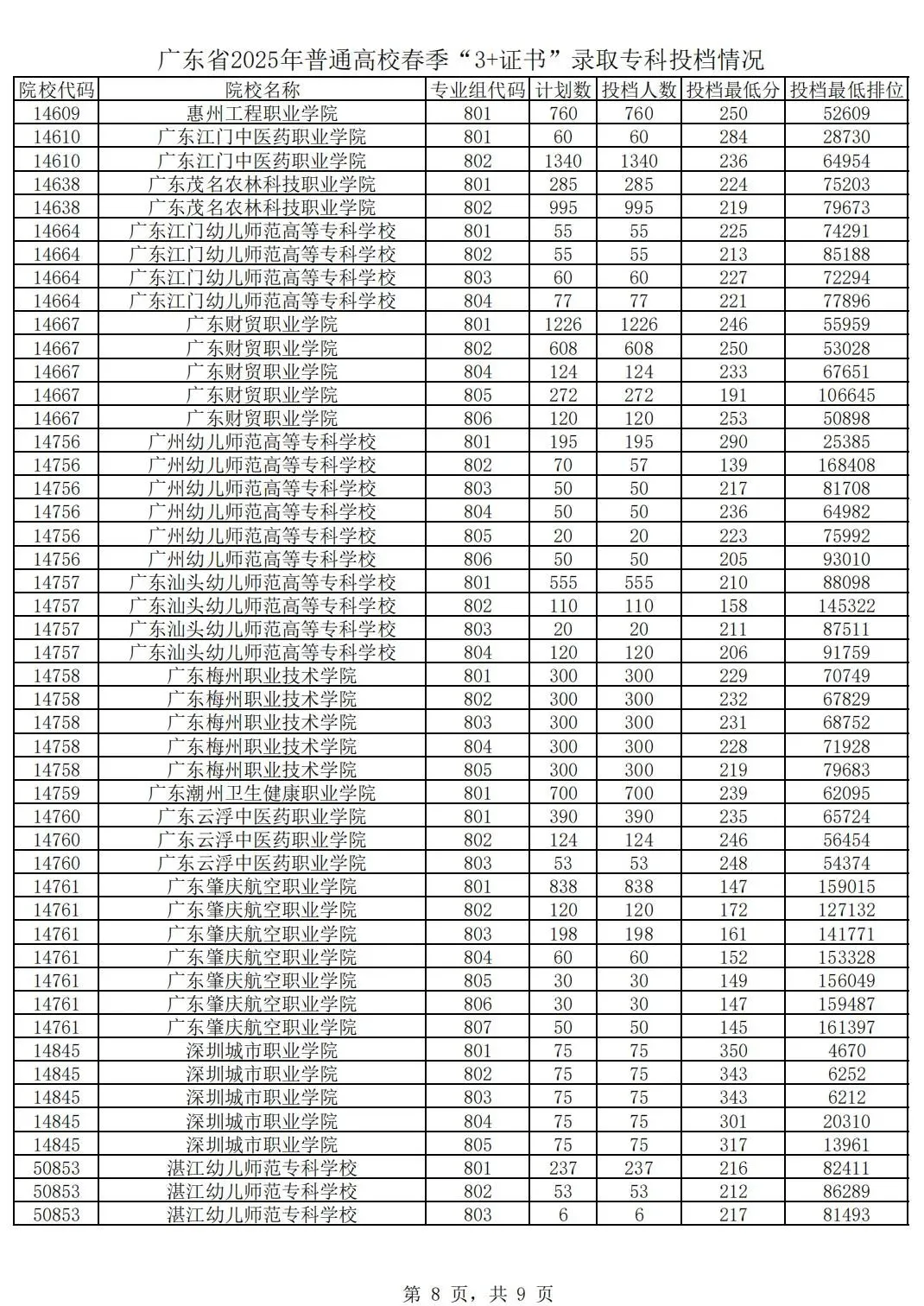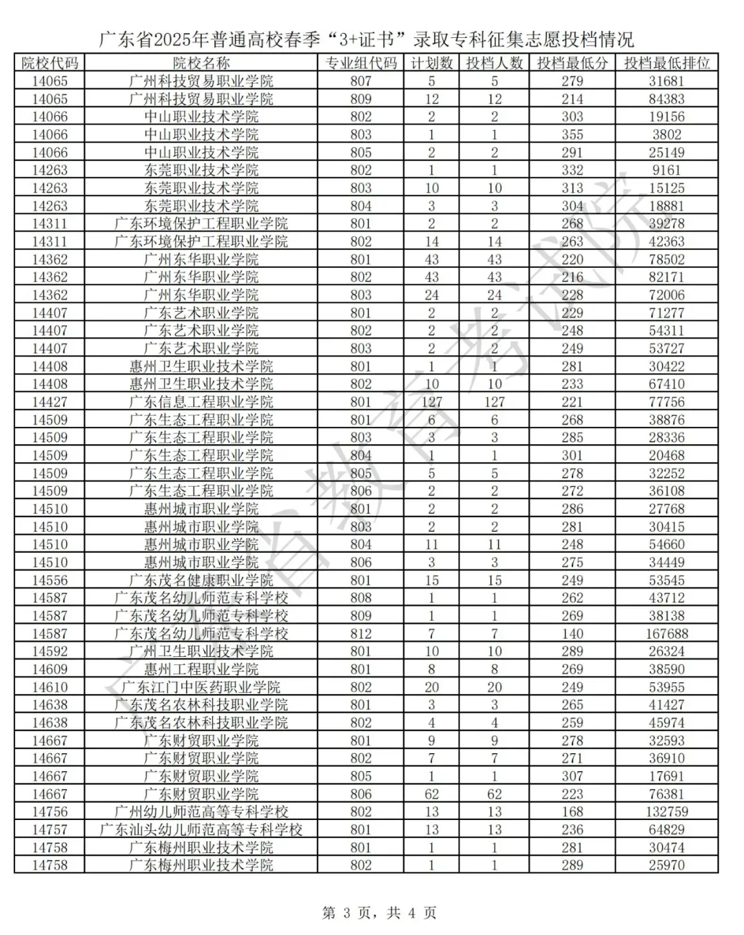 广东省2025年普通高校春季分类考试(“3+专业技能课程证书”)招生录取最低分数线如下: