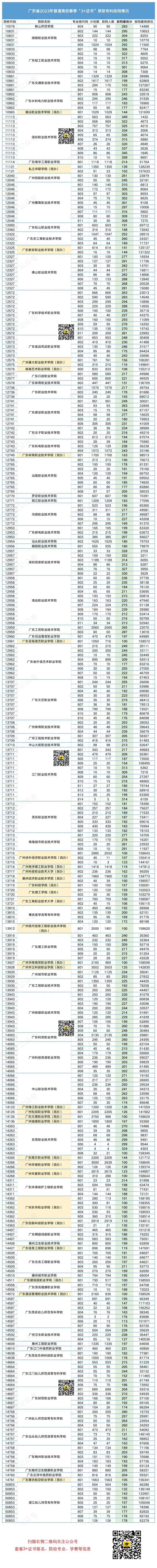 广东省2023年普通高校春季分类考试(“3+专业技能课程证书”)招生录取最低分数线如下: