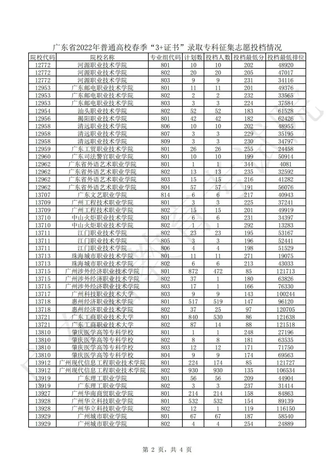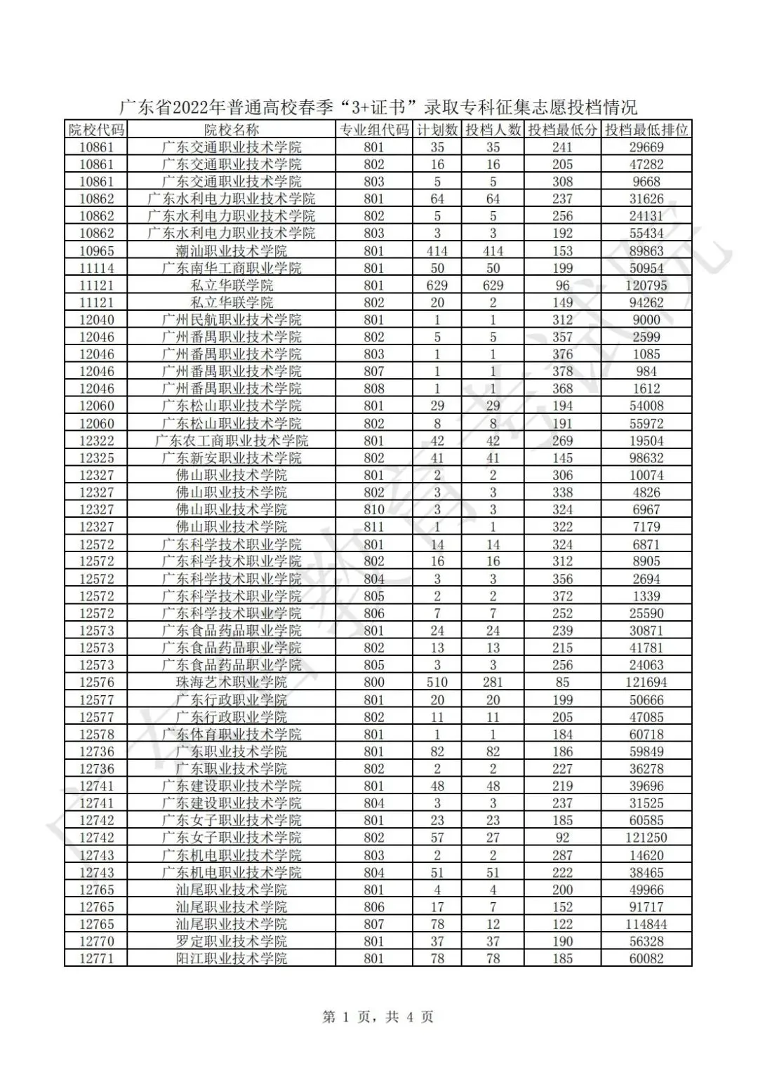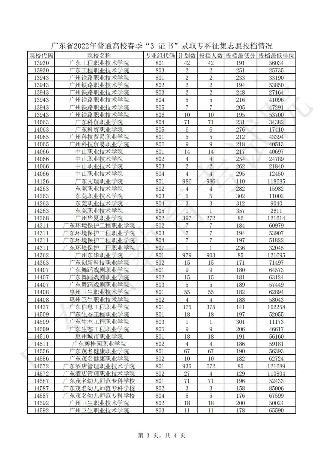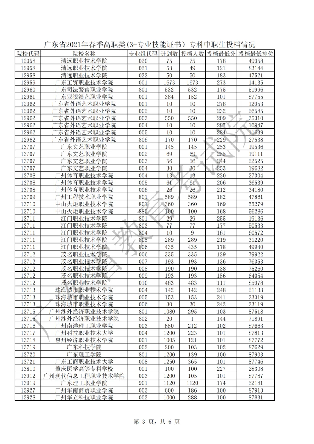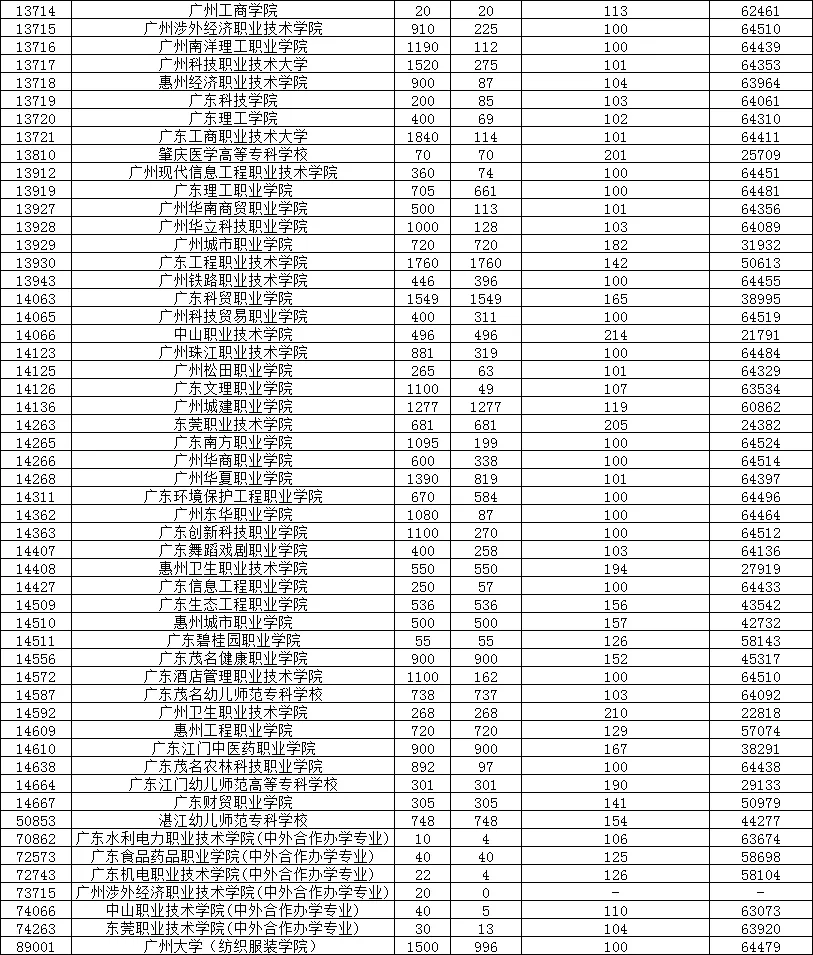 广东省2024年普通高校春季分类考试(“3+专业技能课程证书”)招生录取最低分数线如下: