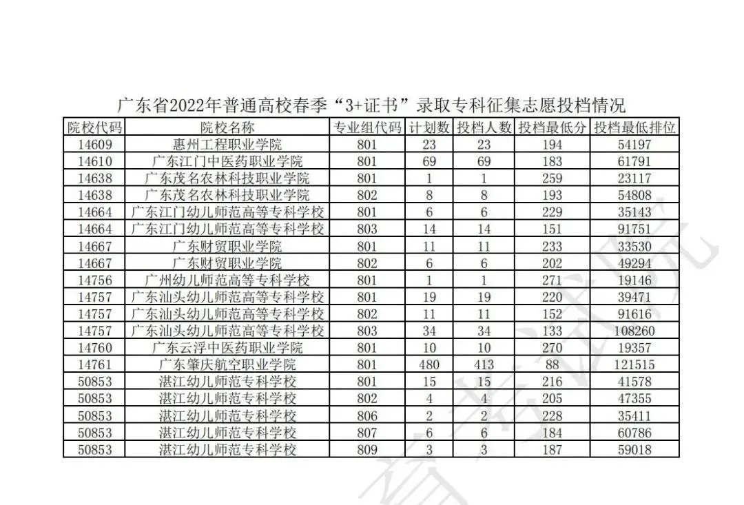 广东省2022年普通高校春季分类考试(“3+专业技能课程证书”)招生录取最低分数线如下: