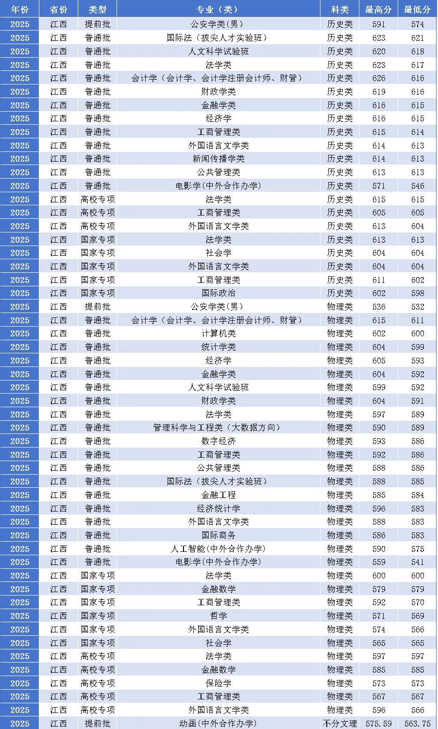 最高分626分!中南财经政法大学2025年江西高考本科各专业录取分数线!