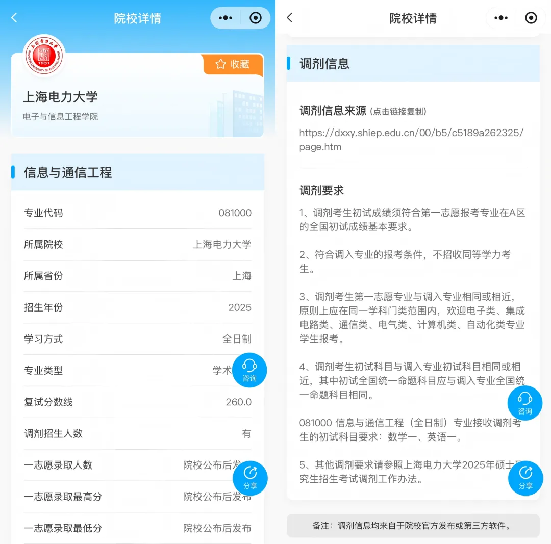 院校调剂详情界面展示