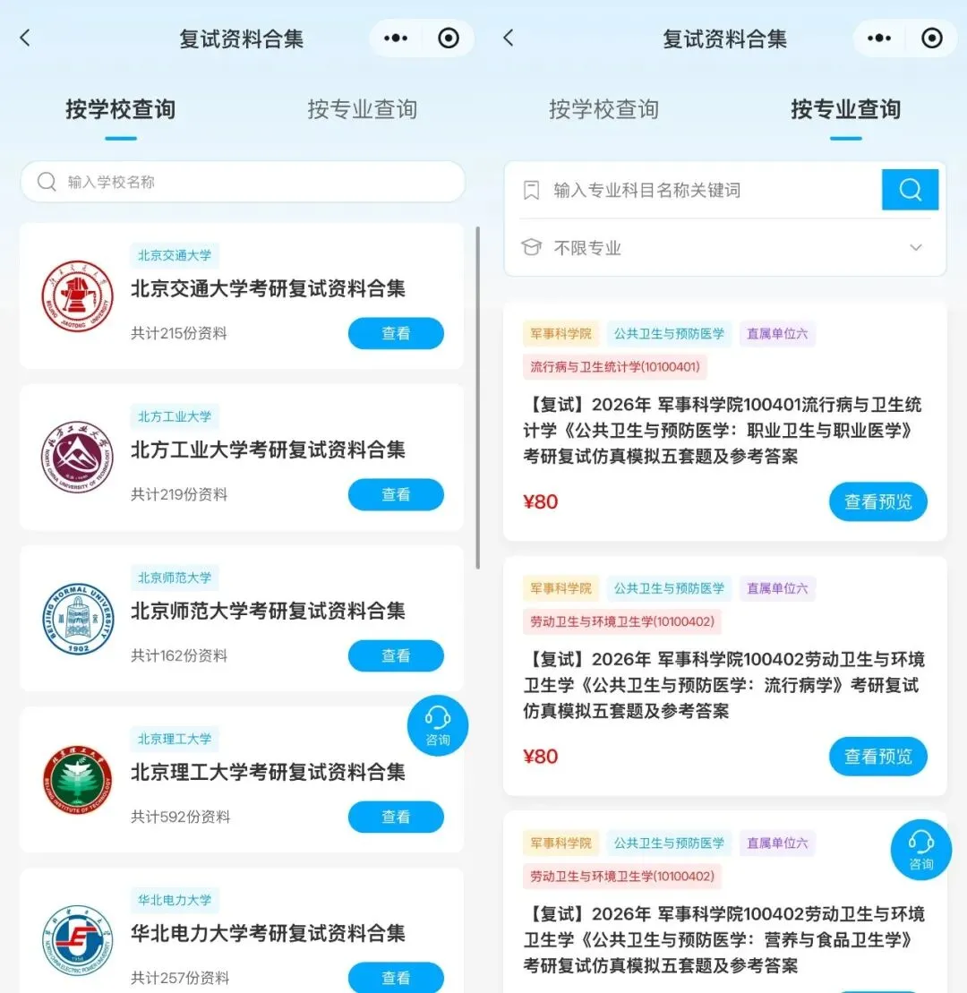 万份复试真题一网打尽,覆盖300所高校,直击90%复试核心考点。