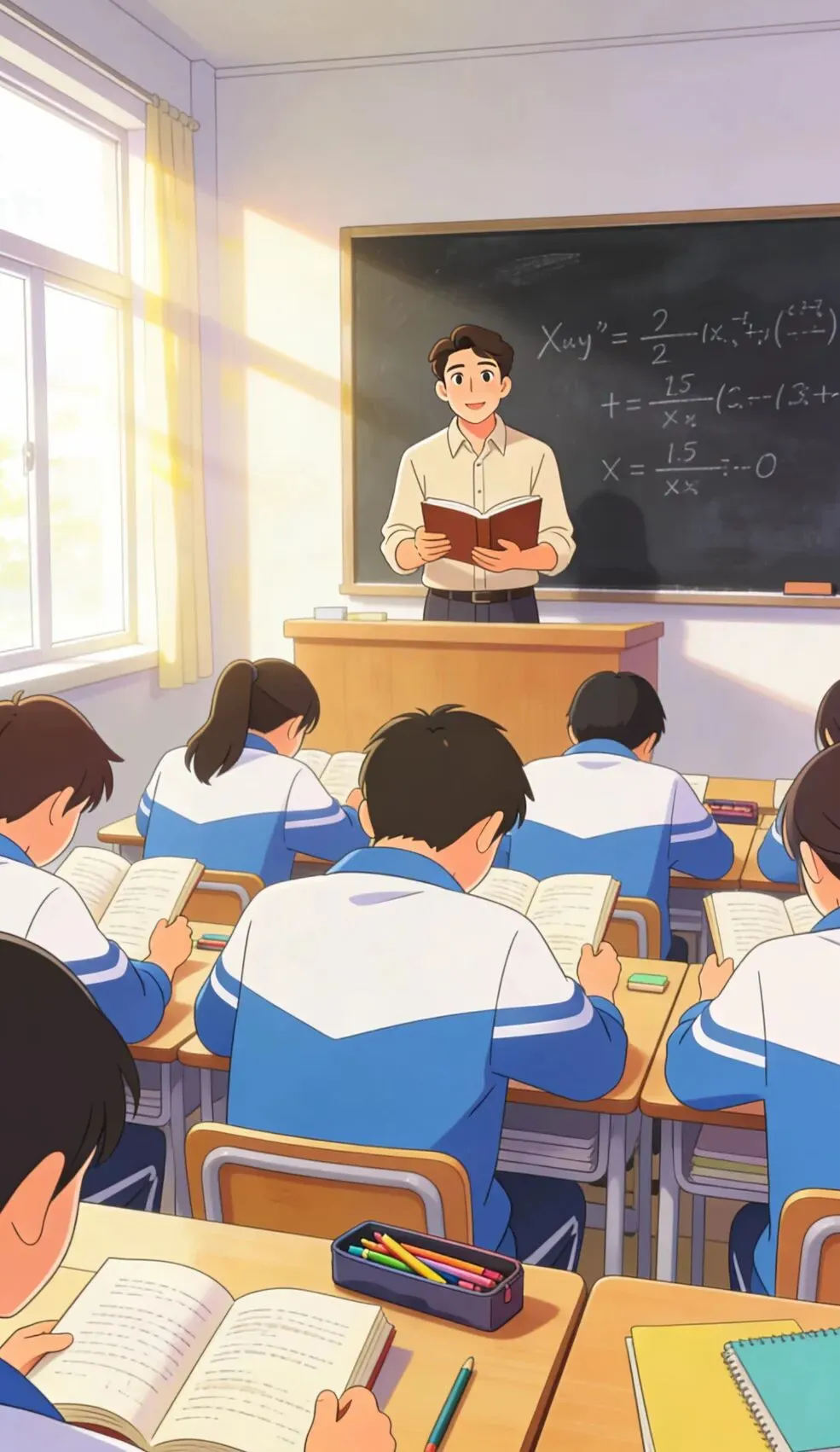 还站在我后面,一题一题看着我写。