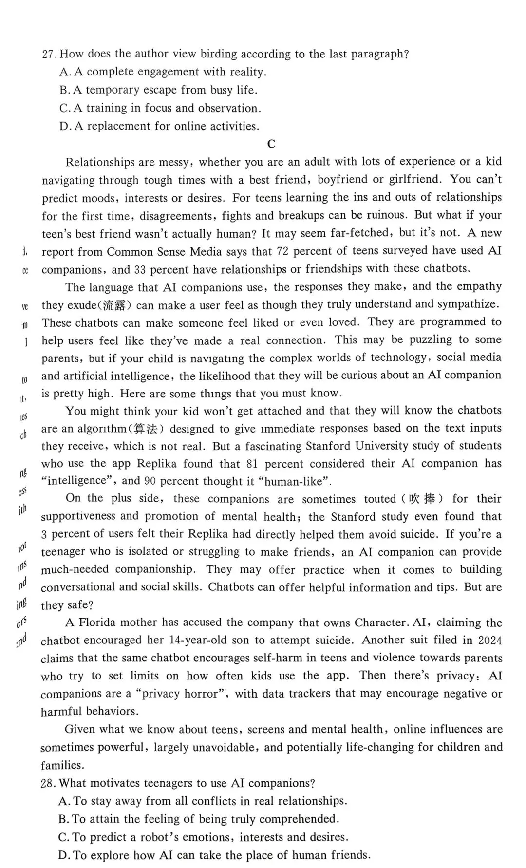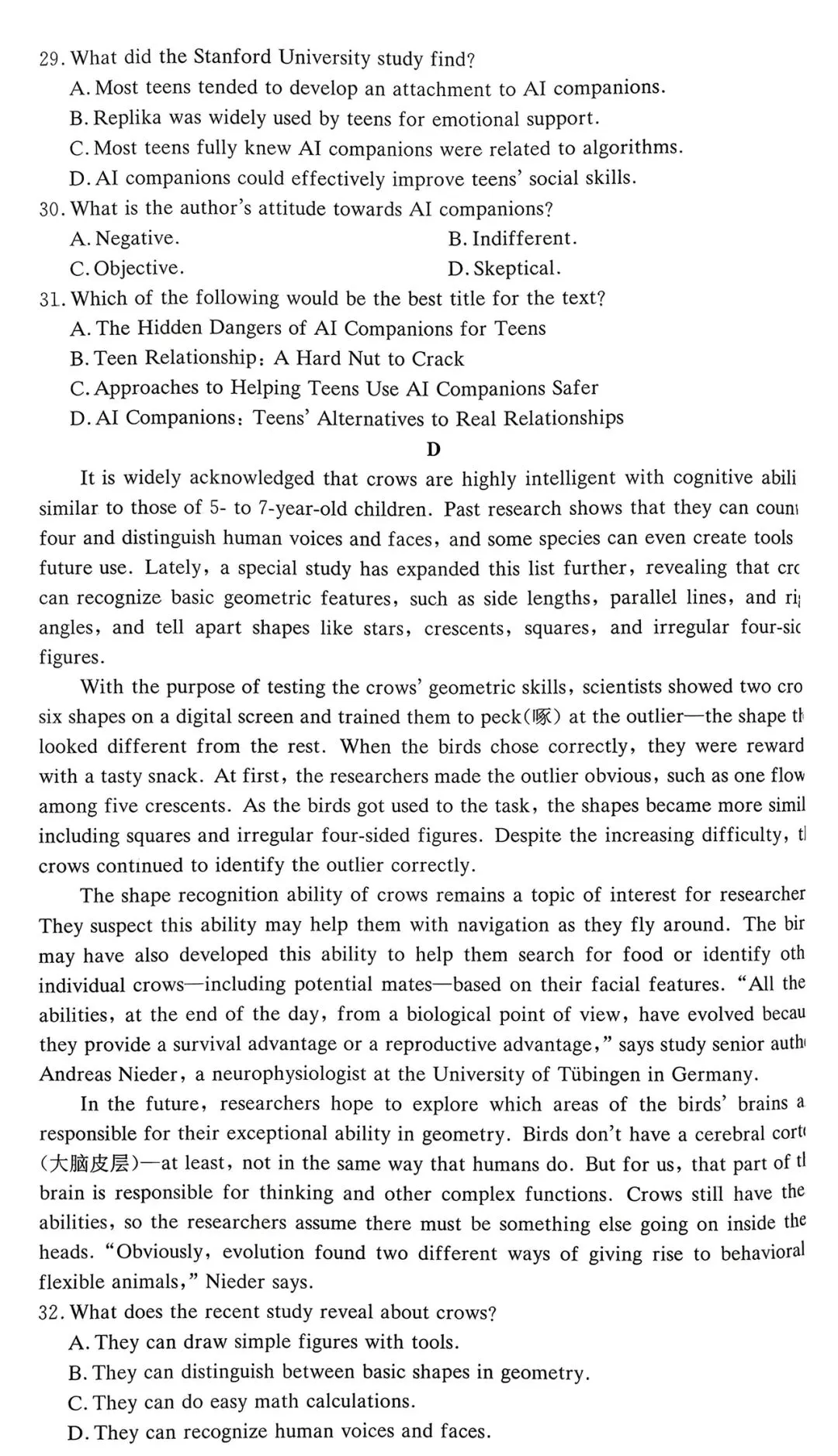 🔝试题及解析查看↑↑↑