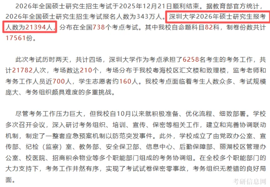 来源链接:深圳大学考点2026年全国硕士研究生招生考试顺利结束!