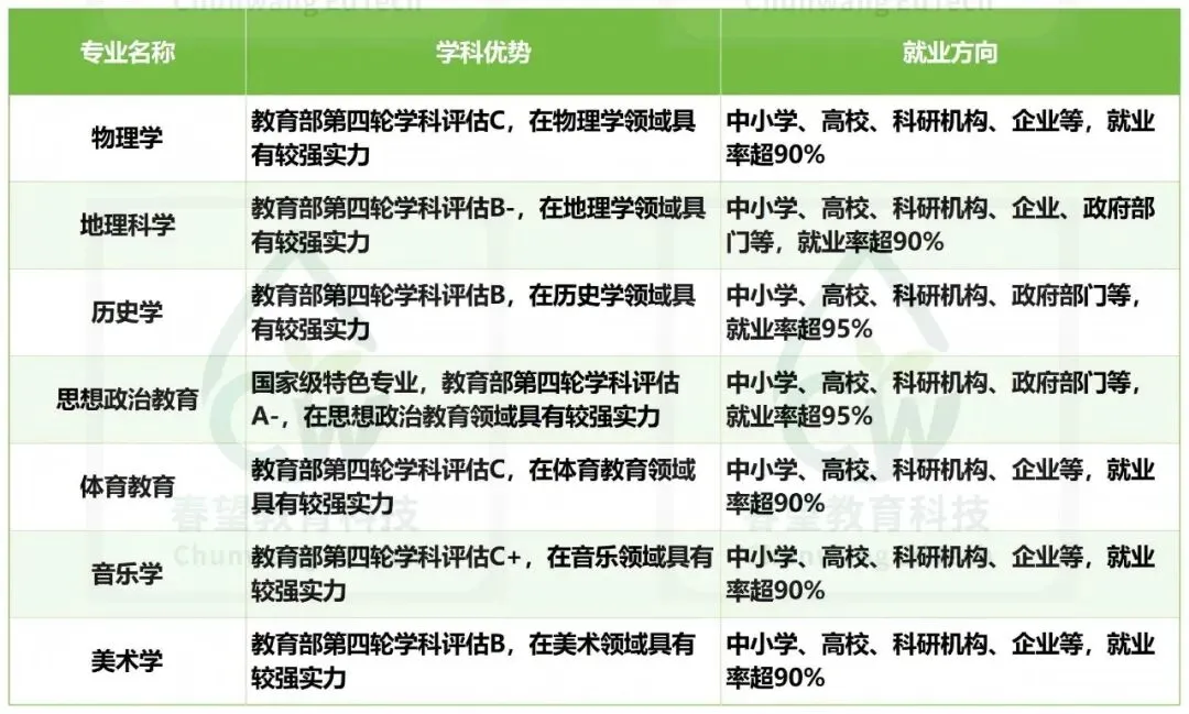o首选思想政治教育、地理科学类、历史学、中国语言文学类,依托学校师范类专业优势,就业方向涵盖教育、科研、政府部门等领域o注意:思想政治教育需选考思想政治,地理科学类需选考地理·新兴潜力专业: