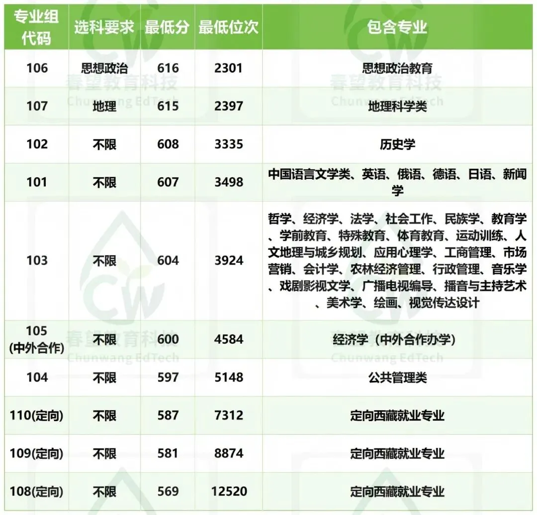 根据四川省教育考试院公布数据,西南大学2025年在川录取呈现以下特点:1. 普通类专业组录取分数线