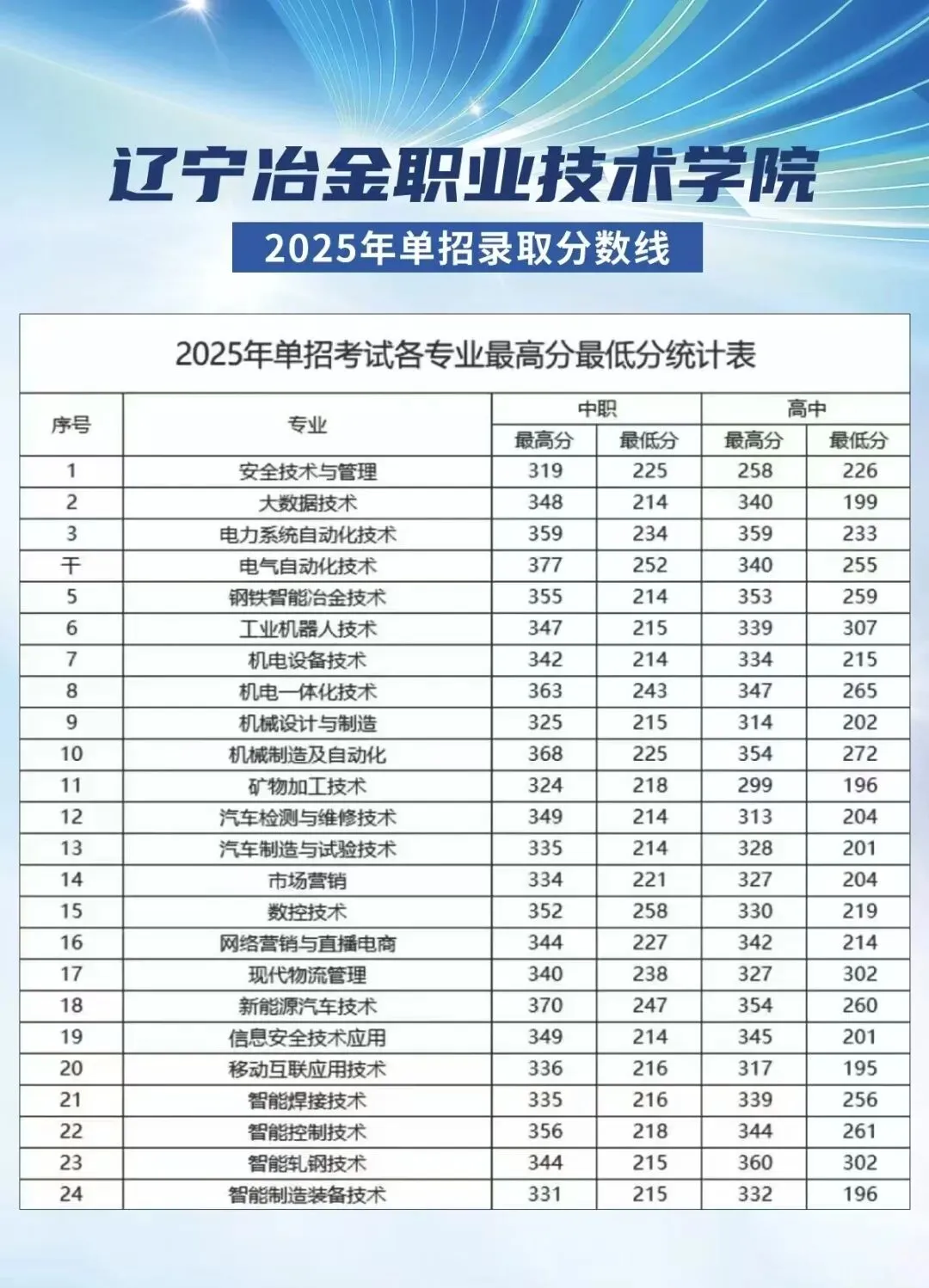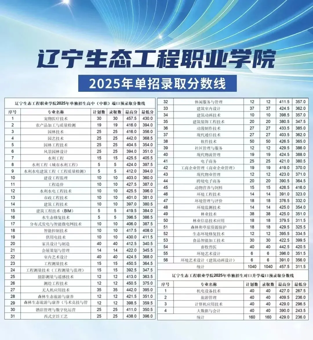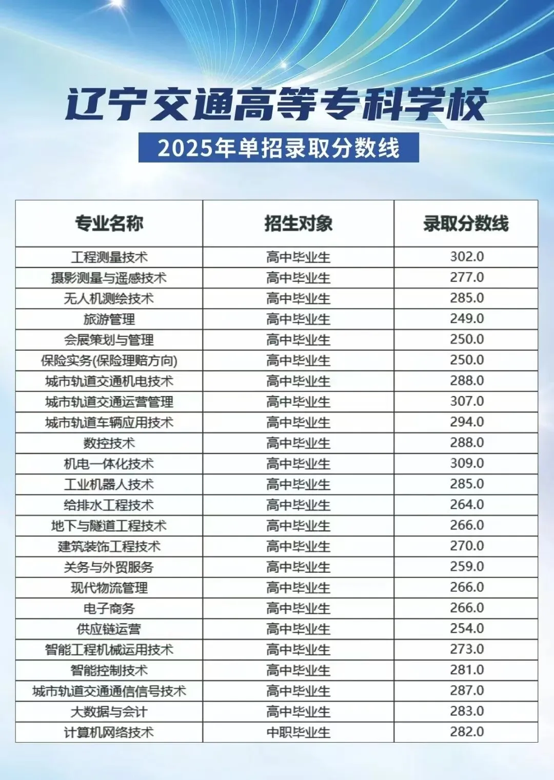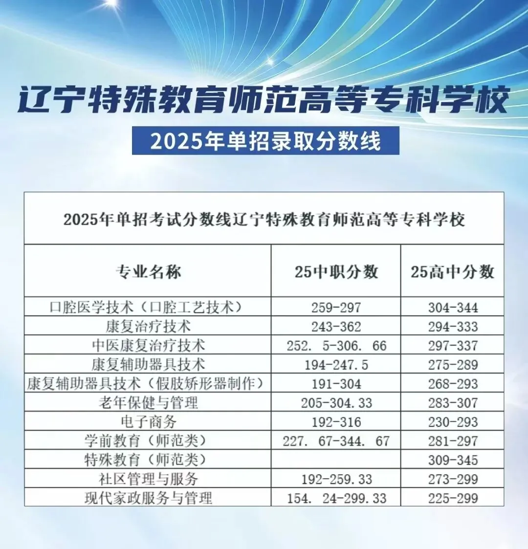 >2025年辽宁省单招院校各专业录取分数线