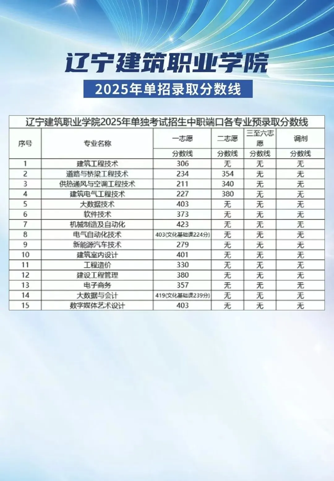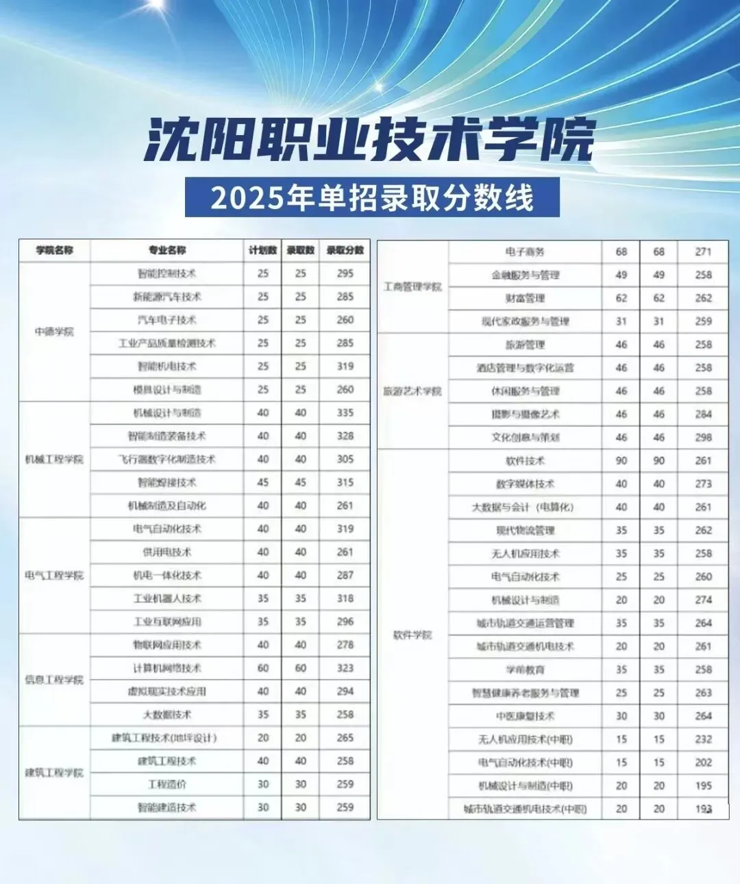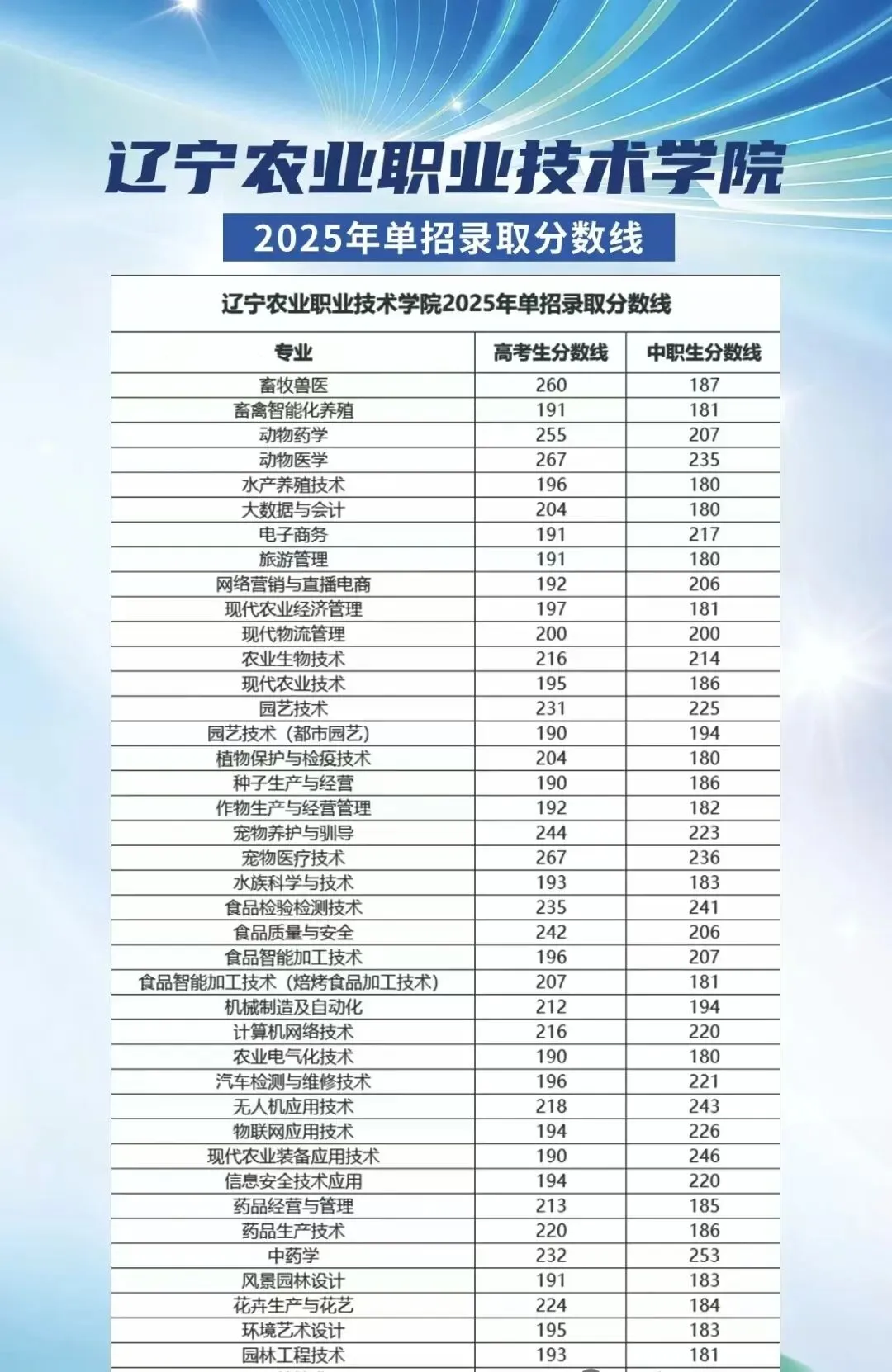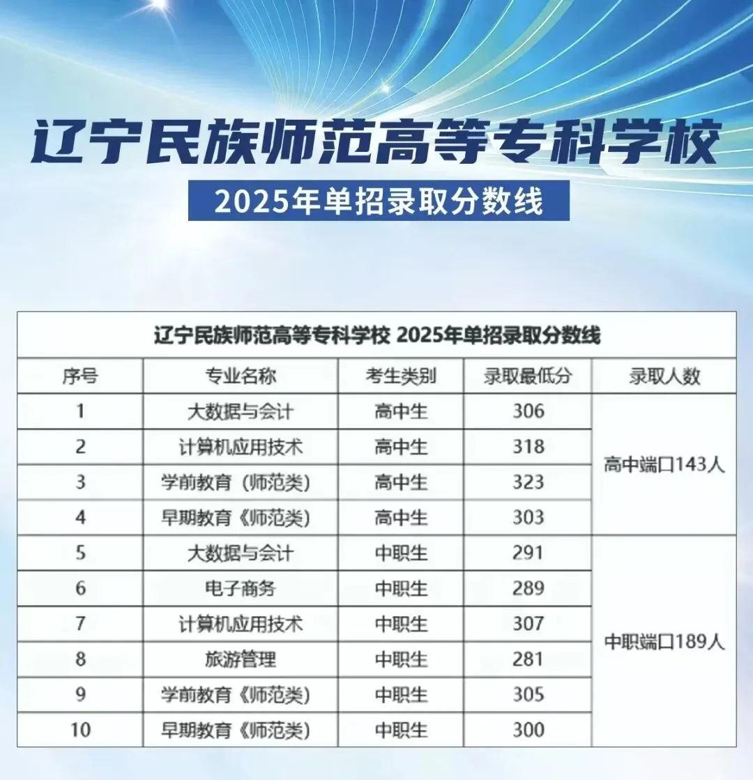 >2025年辽宁省单招院校各专业录取分数线