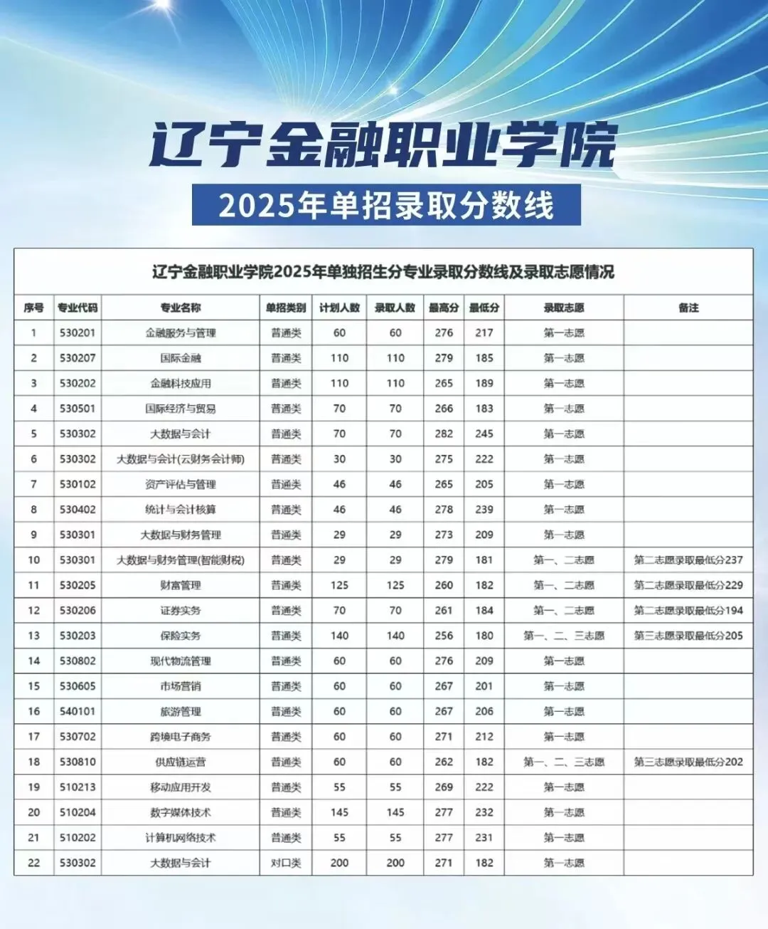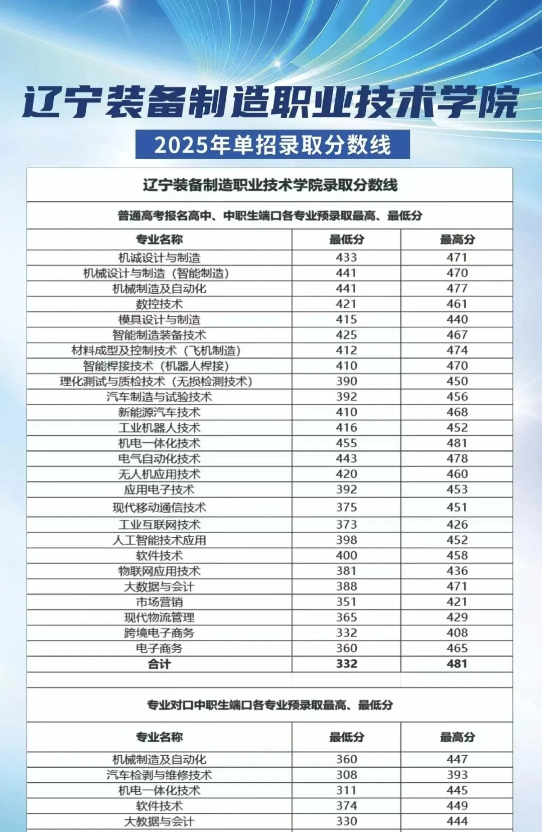 2025年辽宁省单招院校各专业录取分数线