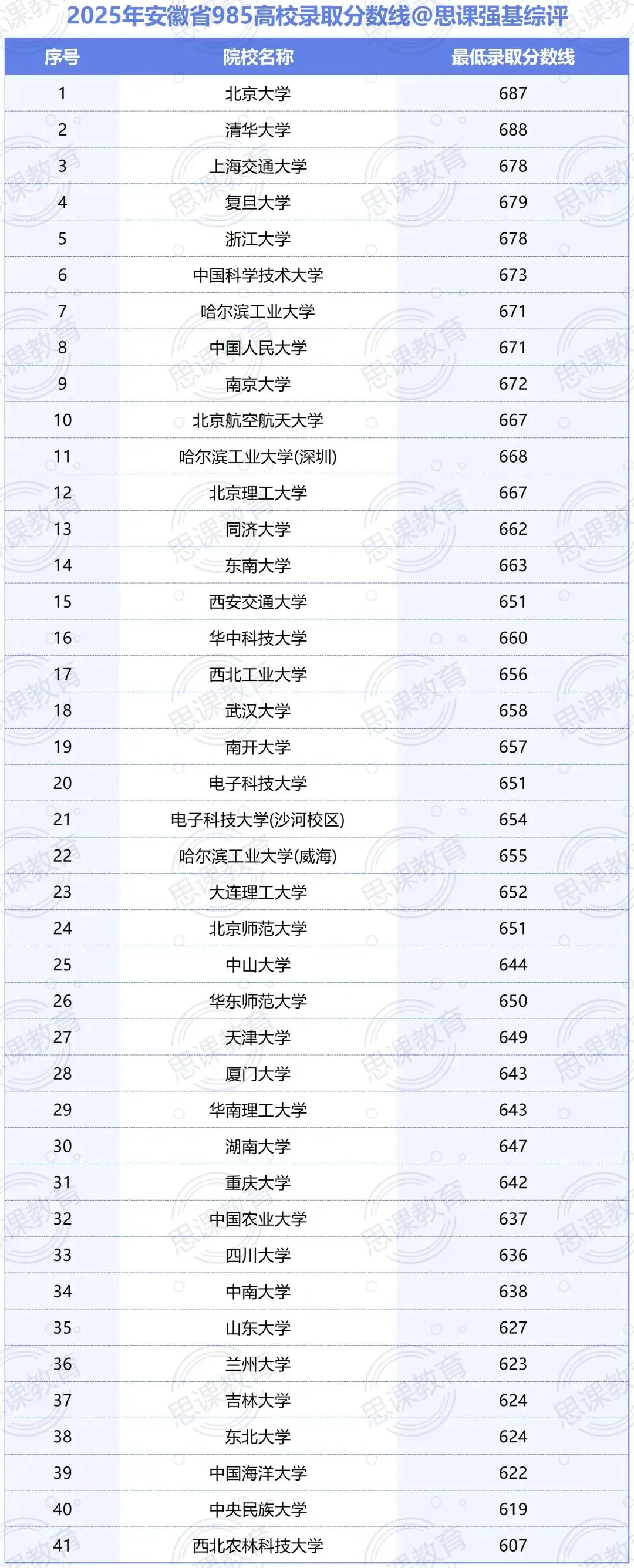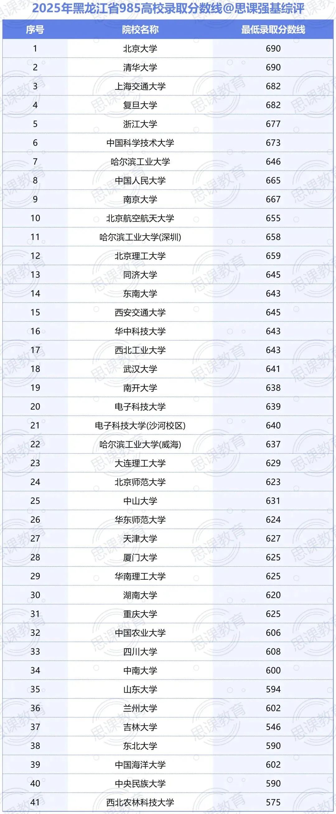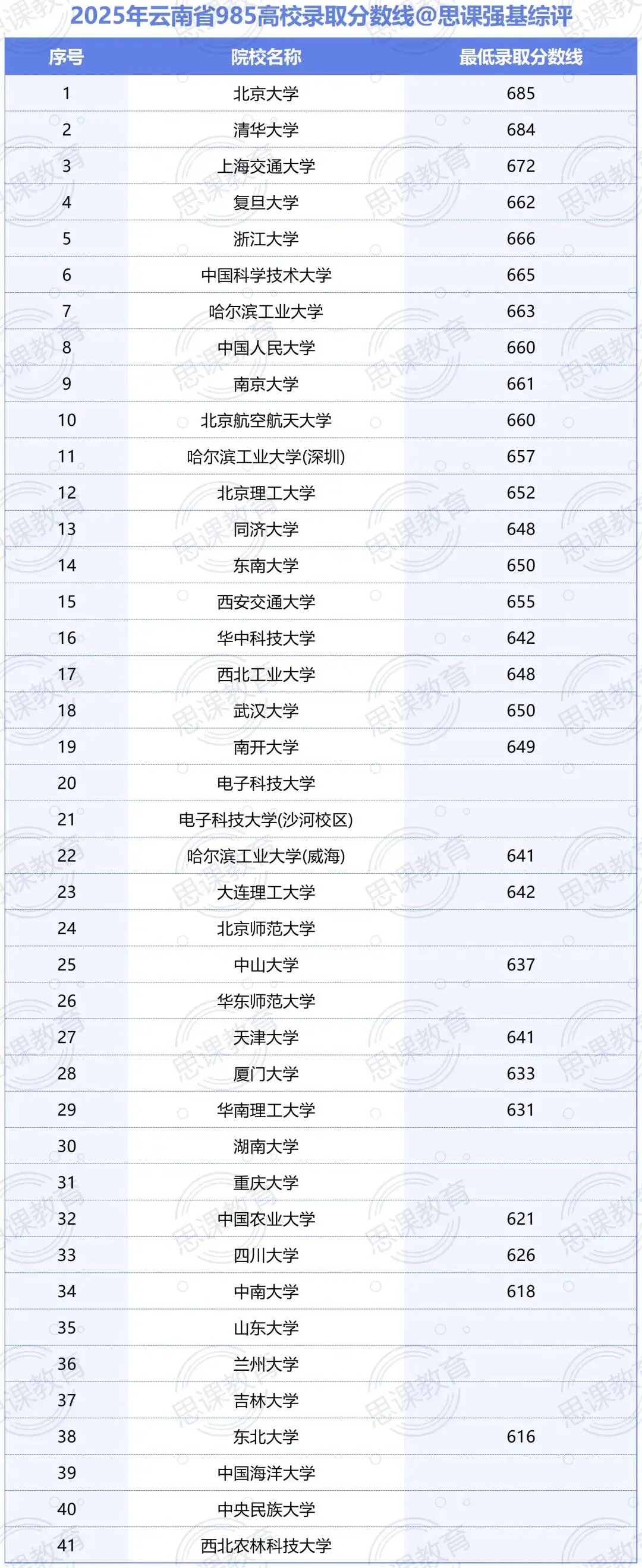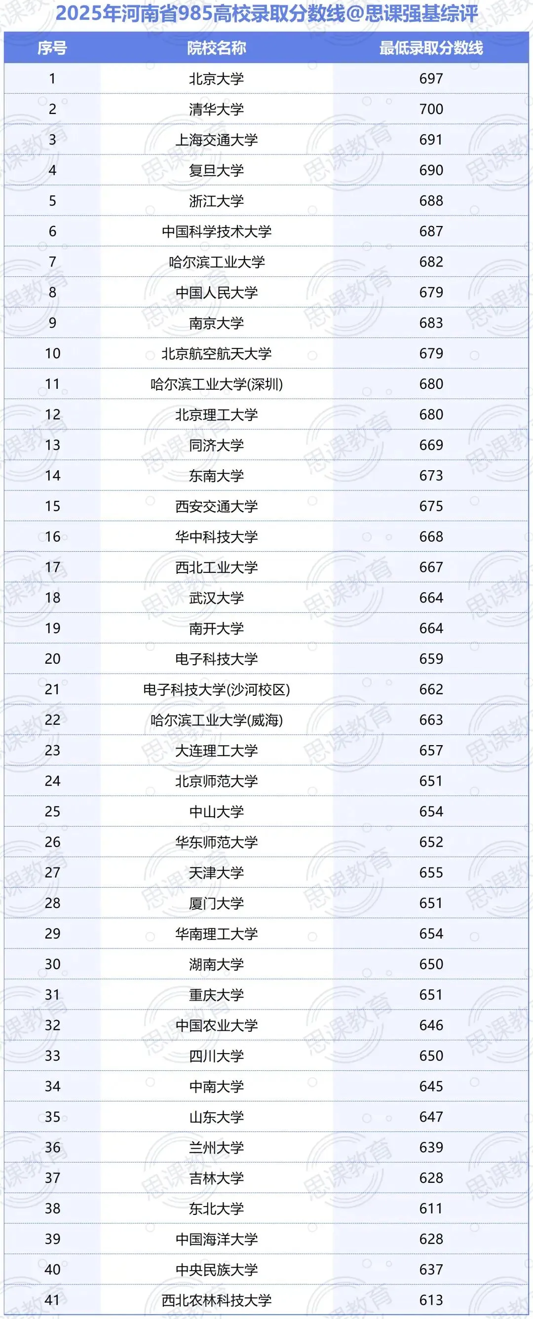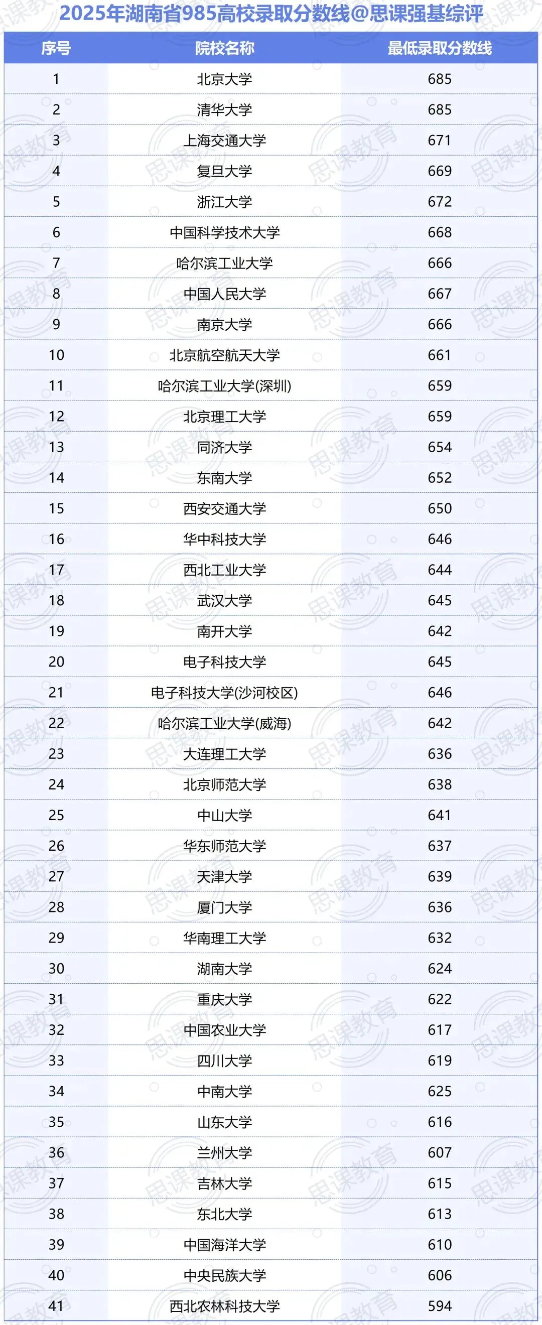 为助力各位考生及家长依据成绩选择目标院校,思课整理了2025年各省市理科版985高校最低录取分数线,并依据数据进行了科学排名,供大家参考!
