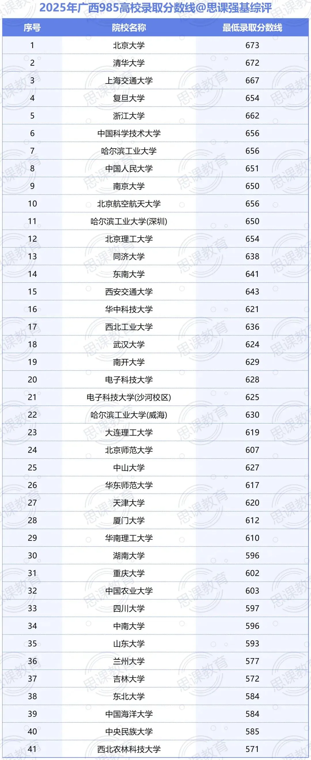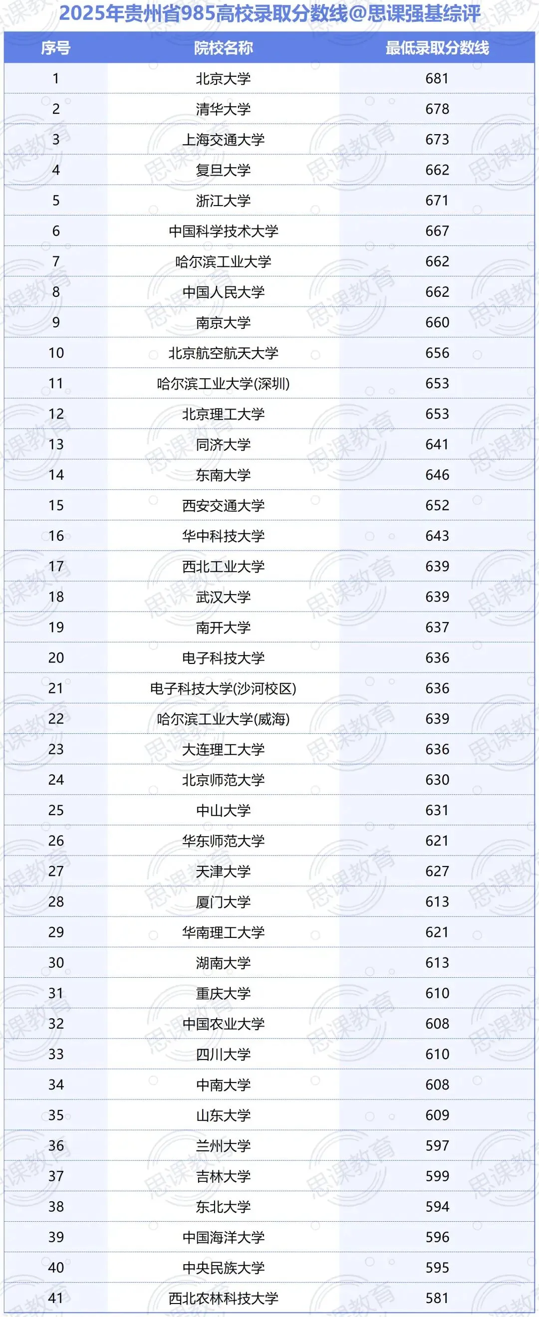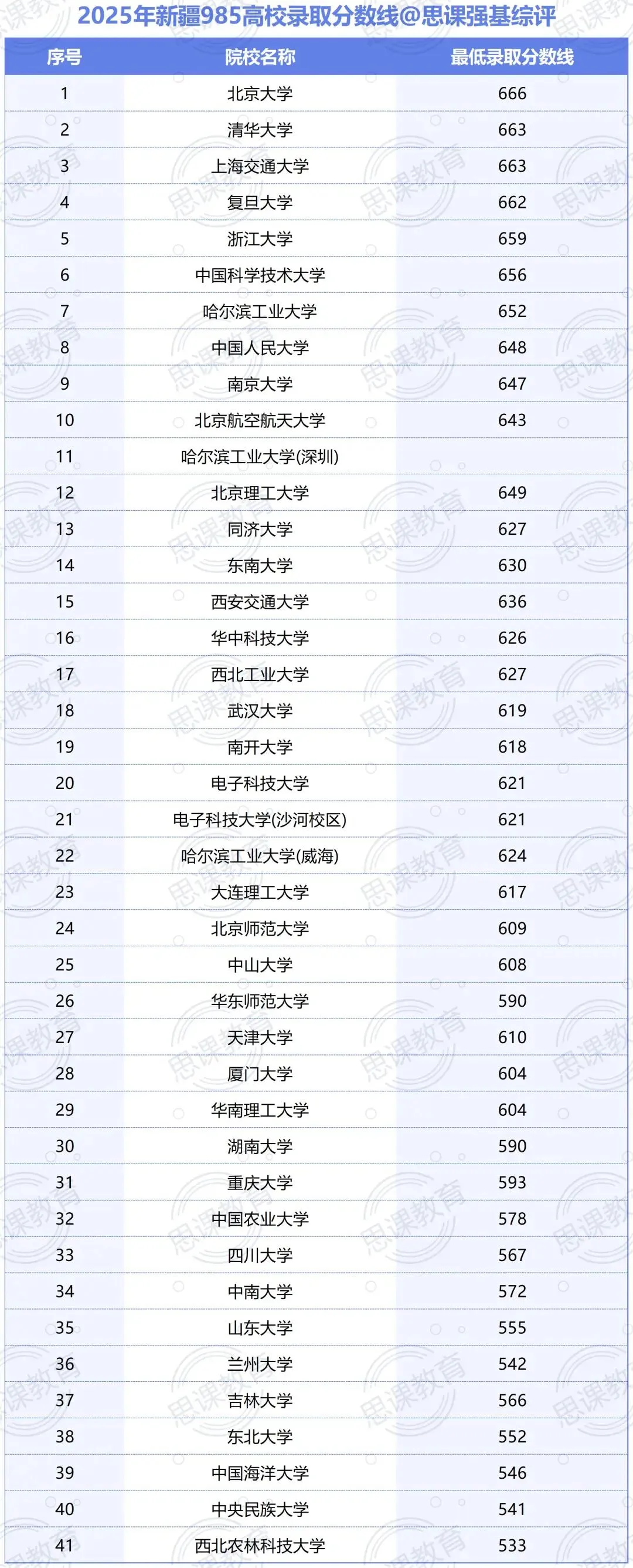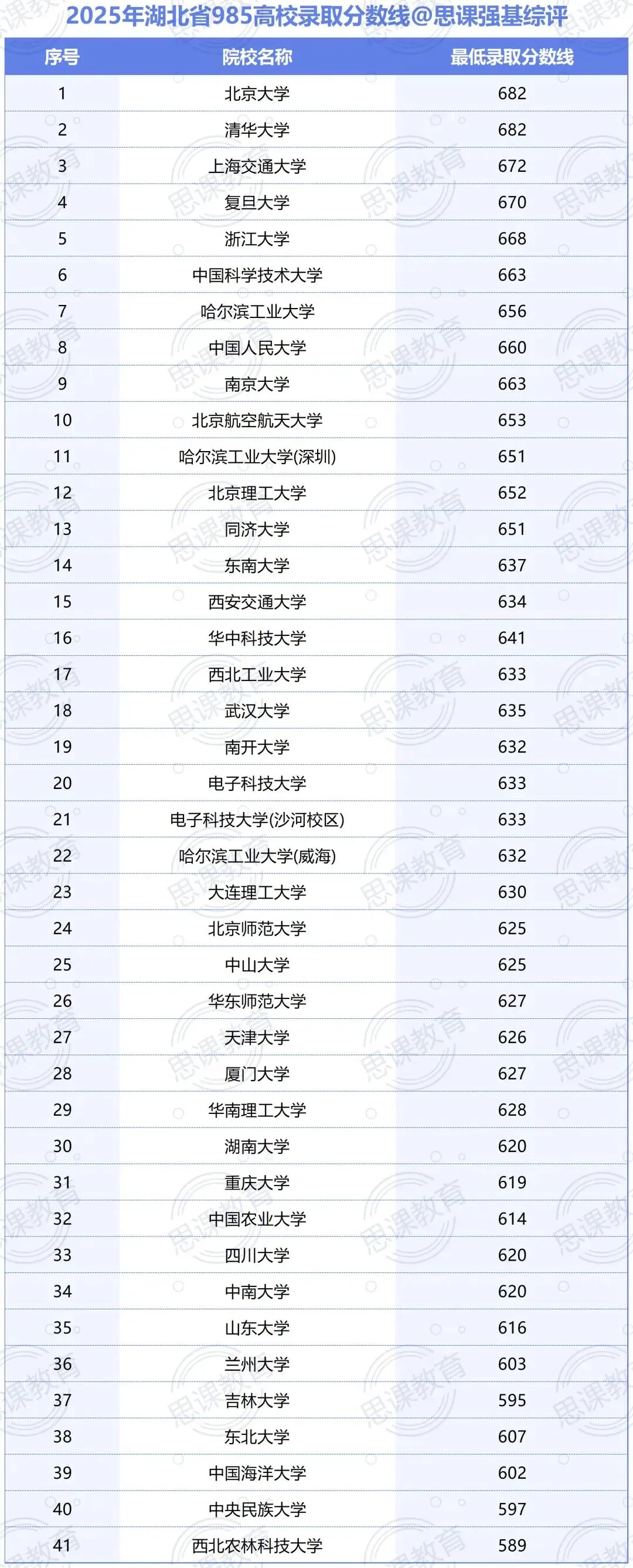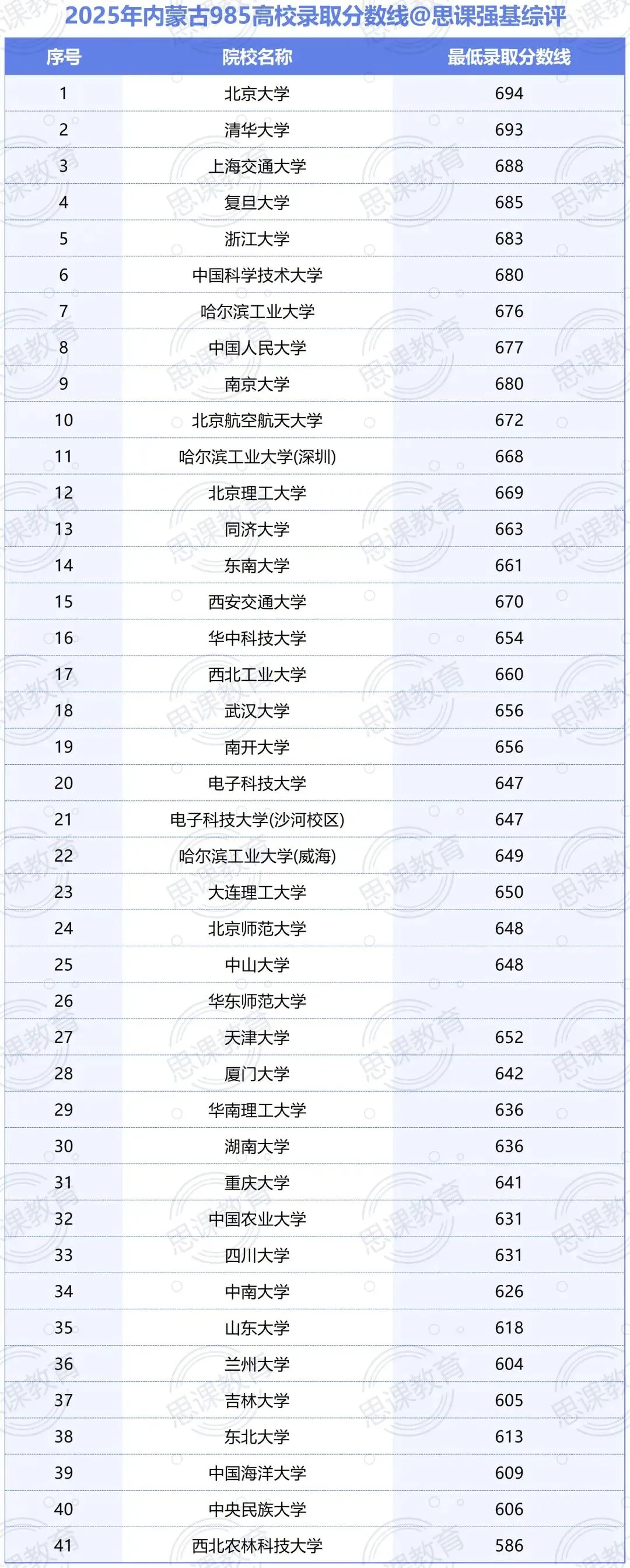 为助力各位考生及家长依据成绩选择目标院校,思课整理了2025年各省市理科版985高校最低录取分数线,并依据数据进行了科学排名,供大家参考!