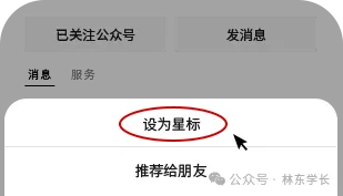 解决的方法就是:星标公众号,就可以更快地收到本号的最新文章啦!(不会星标的同学,看下图!)