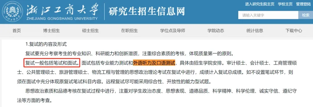 浙江工商大学企业管理、慈善管理等专业考研复试包括笔试和面试,面试是包括口语测试(英文提问)的,但是不考听力。