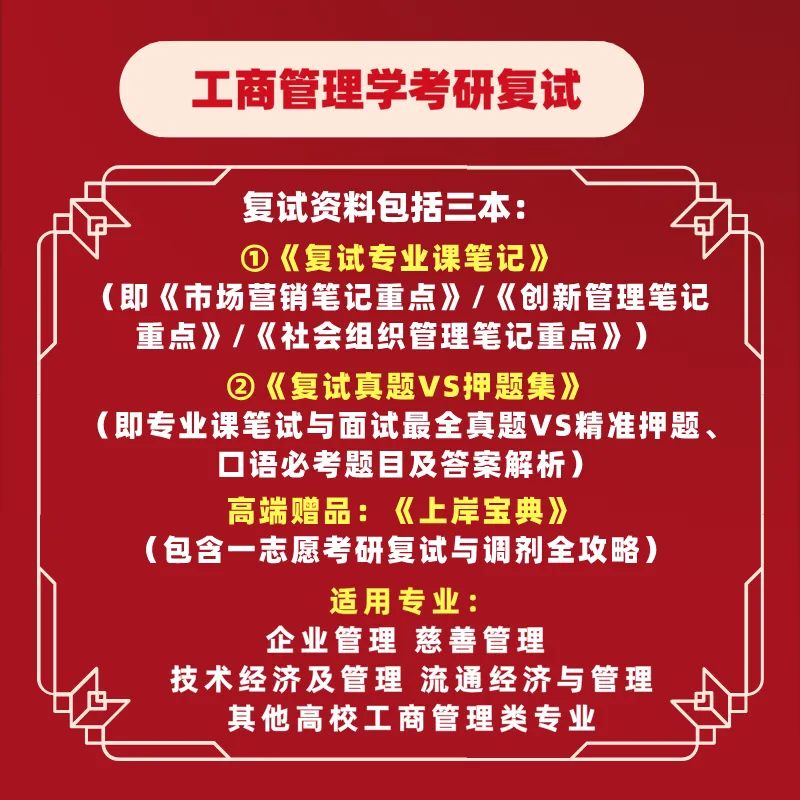 也适用于调剂,只要初试估分在330+,就可以下单,早做准备!26考研复试备考的任务并不轻松,现在下单,占得先机!