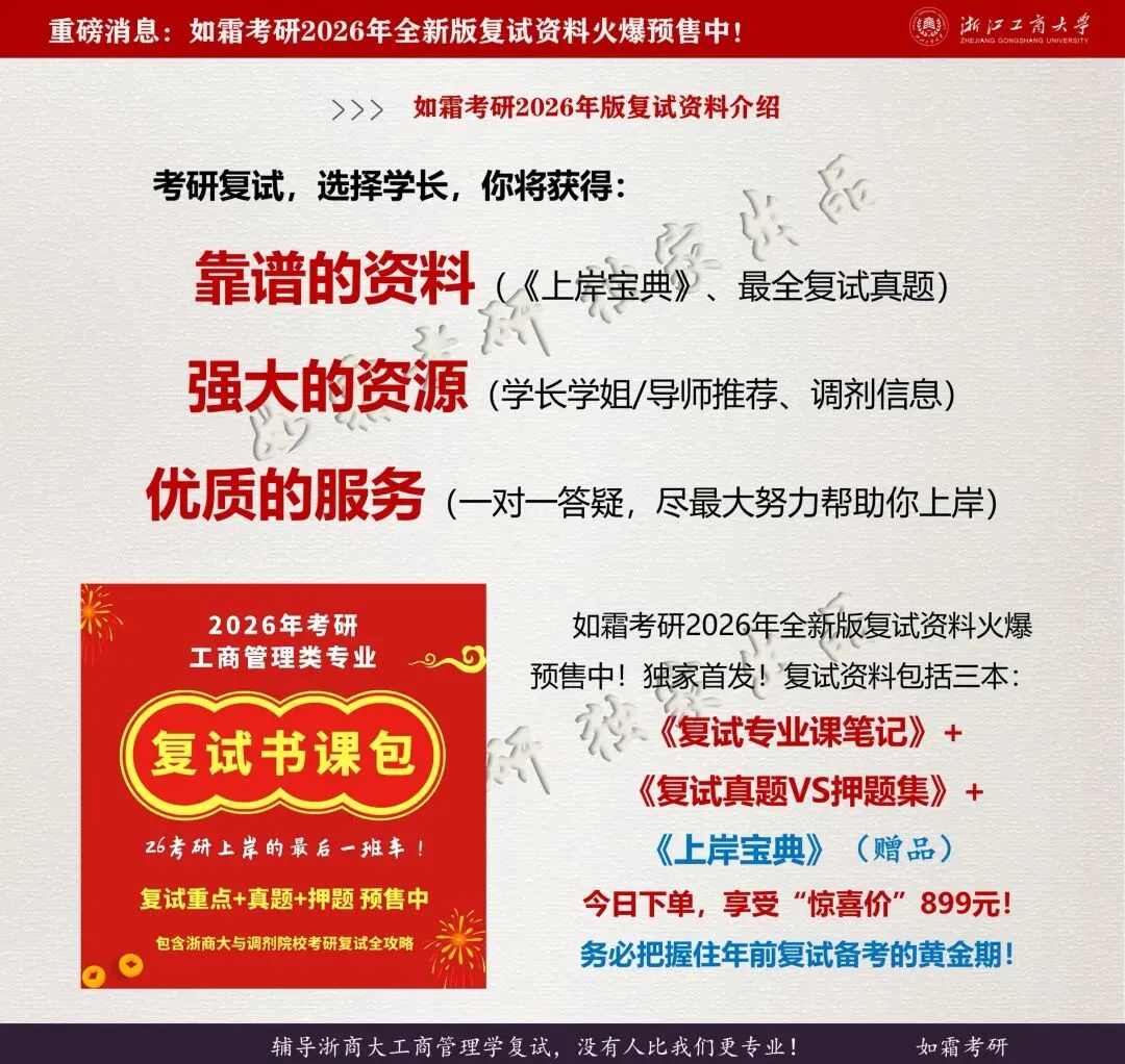 【2026全新版复试资料】涵盖浙江工商大学考研复试与调剂全攻略,现在下单,做两手准备,为你上一道双保险,今年上岸不再难!