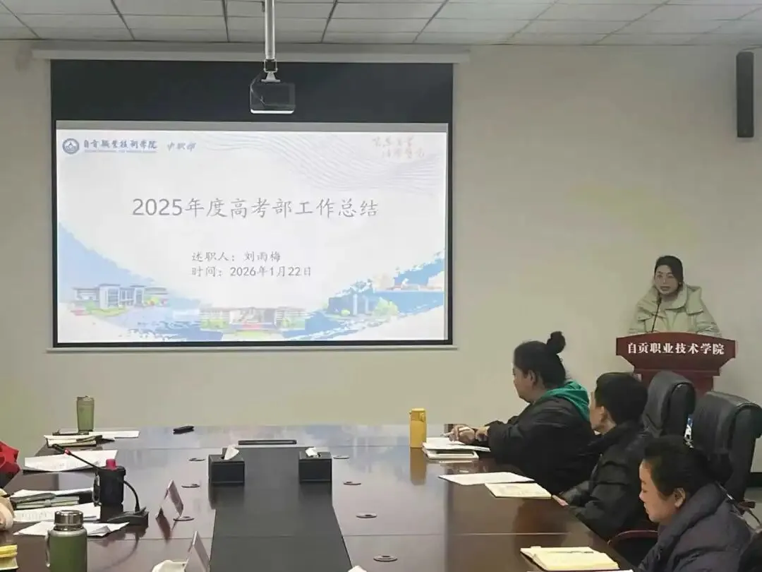 2026年1月22日14:30分,自贡职业技术学院中职部教研组部长年终述职大会在学术交流中心3007会议室顺利召开。会议由教务处副主任付娆主持,庞林华校长、熊志元副校长、教务处杨丽萍副处长出席会议,各教研组部长及相关工作人员参加会议。
