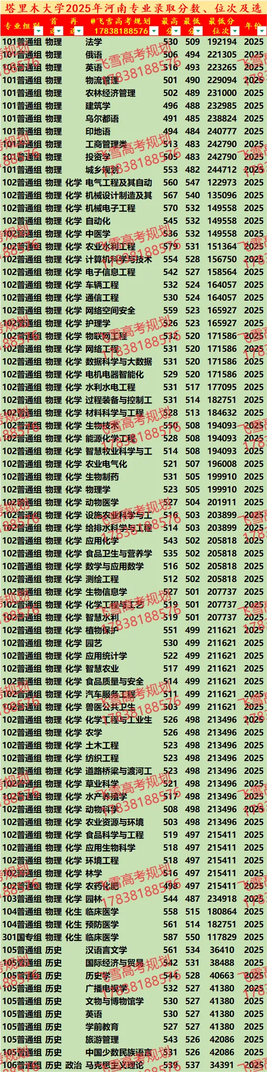塔里木大学2021-25年河南录取分数线、位次及选科