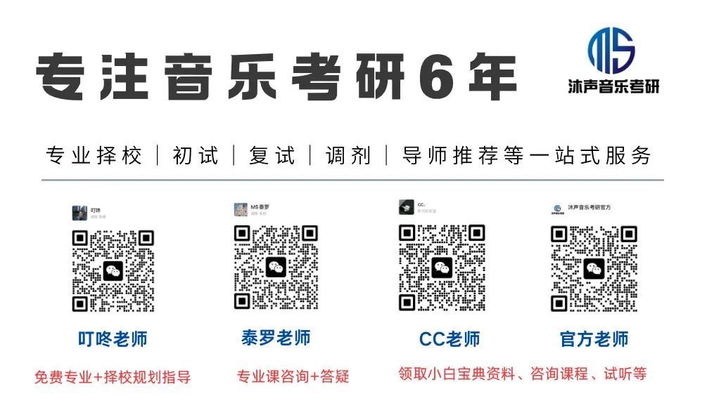 【同等学力】同等学力报考者须提交报考专业领域的两位副高以上职称的专家推荐信,并在复试阶段进行加试,同等学力跨专业报考者还须提交相关专业学术成果,加试:钢琴(或其他器乐,或声乐)