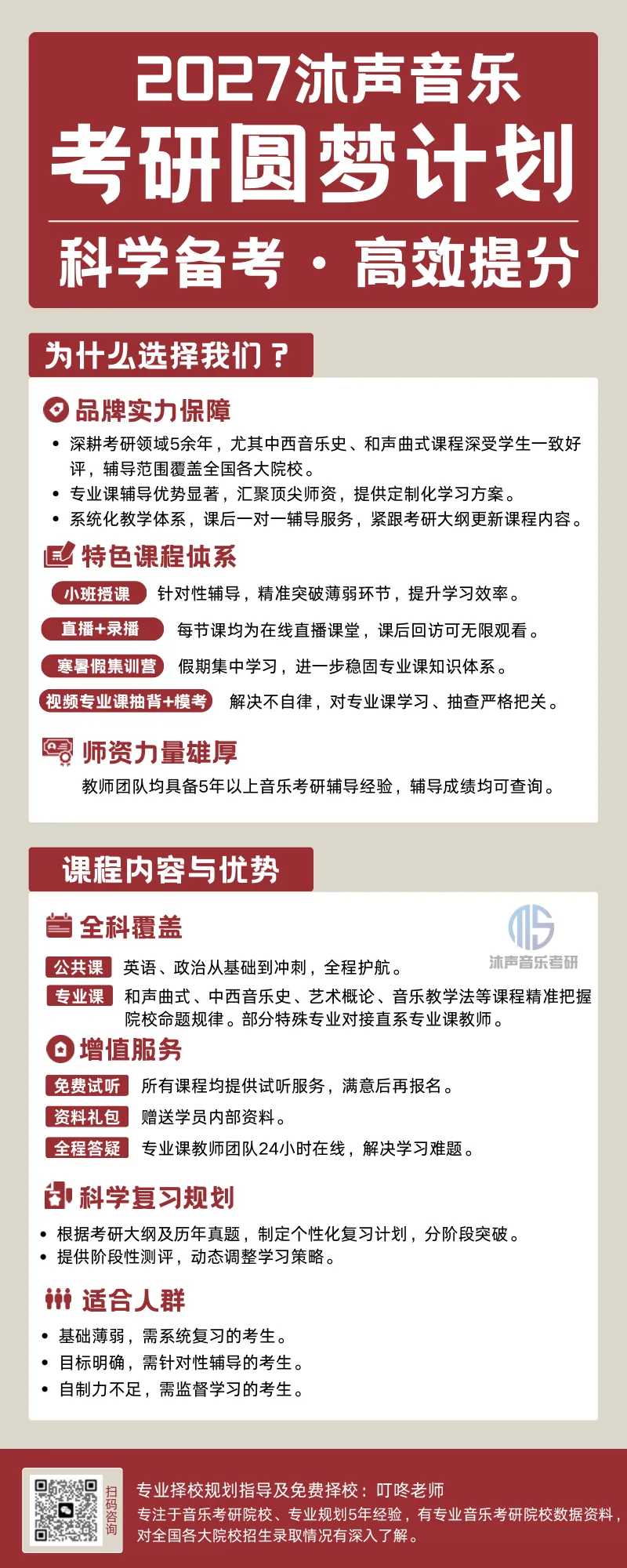 专业复试:(1)自选一项可体现音乐特长、基本音乐素养的项目进行现场展示,包括声乐、器乐(不超过 5 分钟,声乐要求无伴奏,器乐除钢琴外需自备乐器)。
