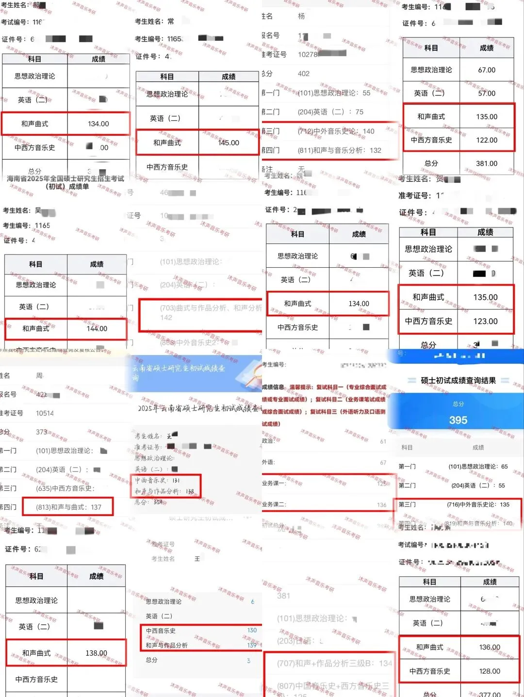 思想政治理论、英语二、624中国民族民间音乐、846曲式与和声分析