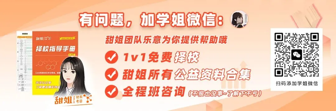 想要了解更多材料考研的院校信息,可以领一份我的《27材科考研择校指导手册》,里面有183所院校最新的考情,可以省去很多搜集信息的时间。大家在公众号后台回复【择校手册】即可领取!