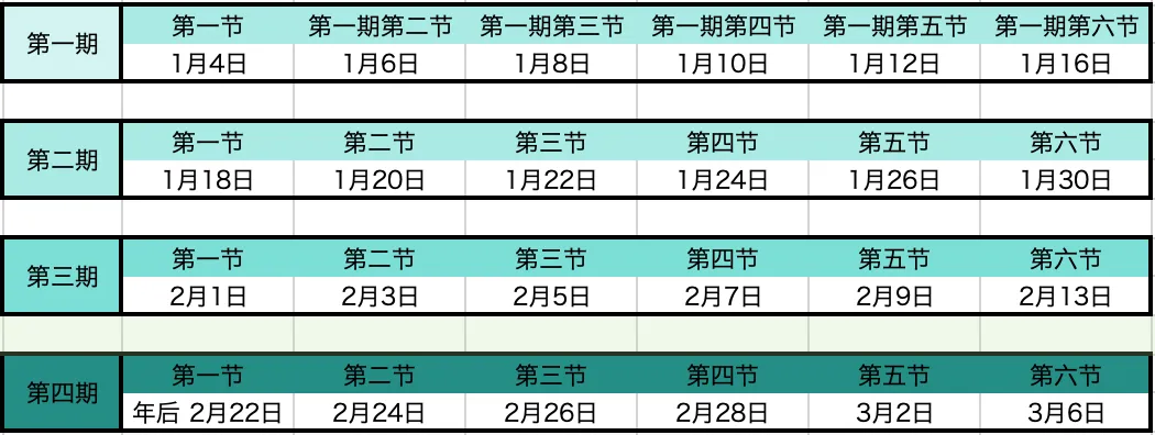 四期课程时间安排(自1月4日起)/ 林创优景