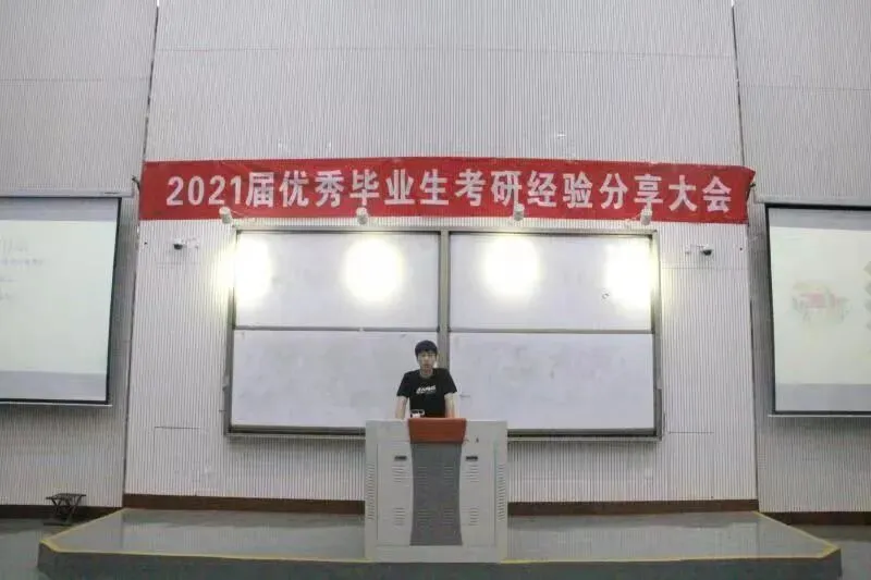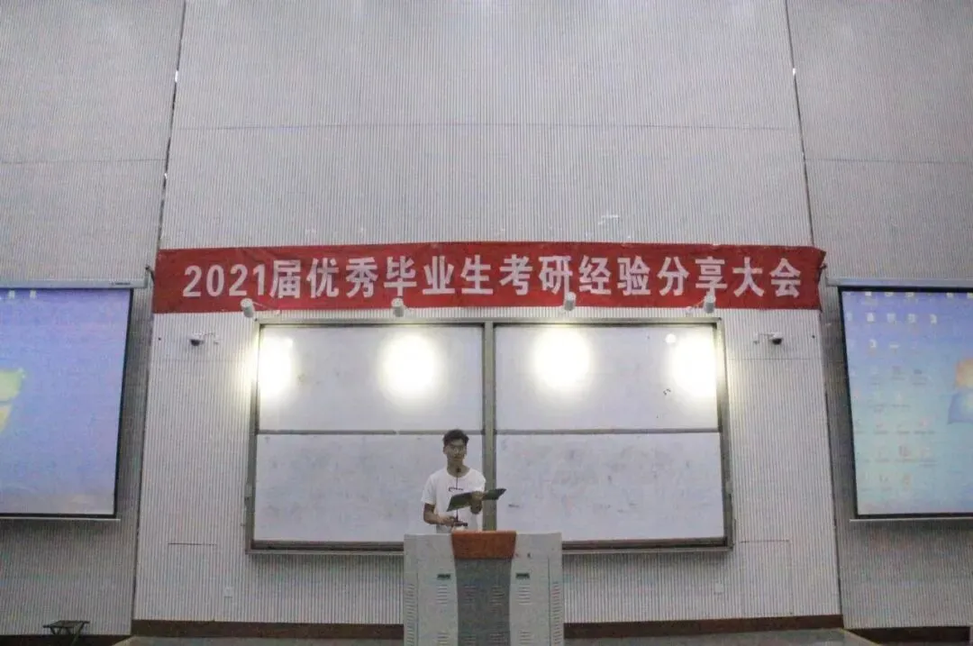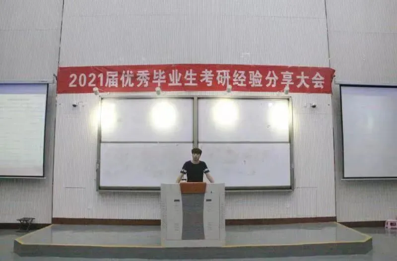 17级社体一班刘龙昌同学主要从考研初试和复试的经验与同学们进行了分享。他提到:“在确定考研目标院校以及专业后,要了解相关考试科目、初试内容、目标招录人数等相关内容,唯有知己知彼,方能百战不殆。”此外,他还分享了自己在考研复试时的经历,让同学们提前做好复试的准备,不要掉以轻心。