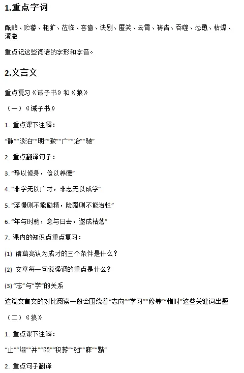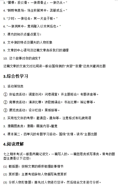 >期末押题 | 七上语文期末考试划重点!