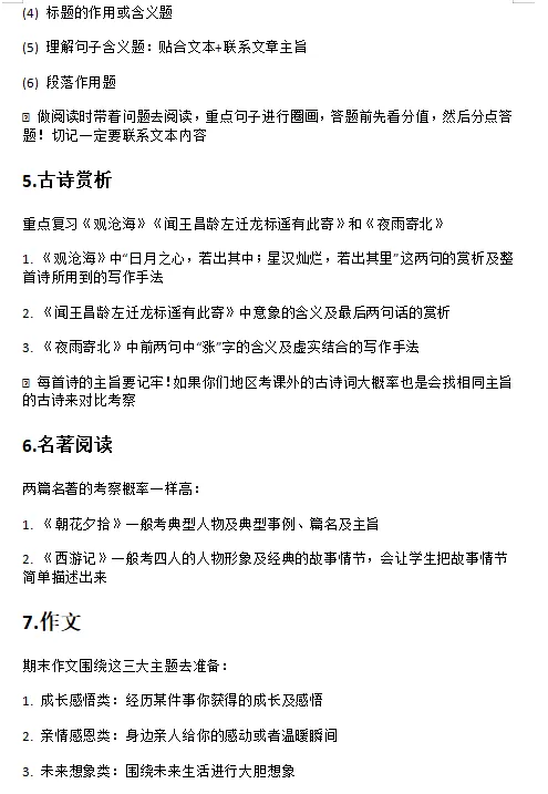 期末押题 | 七上语文期末考试划重点!