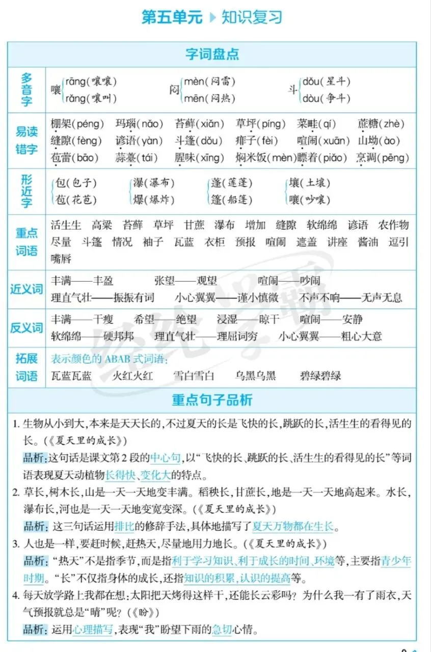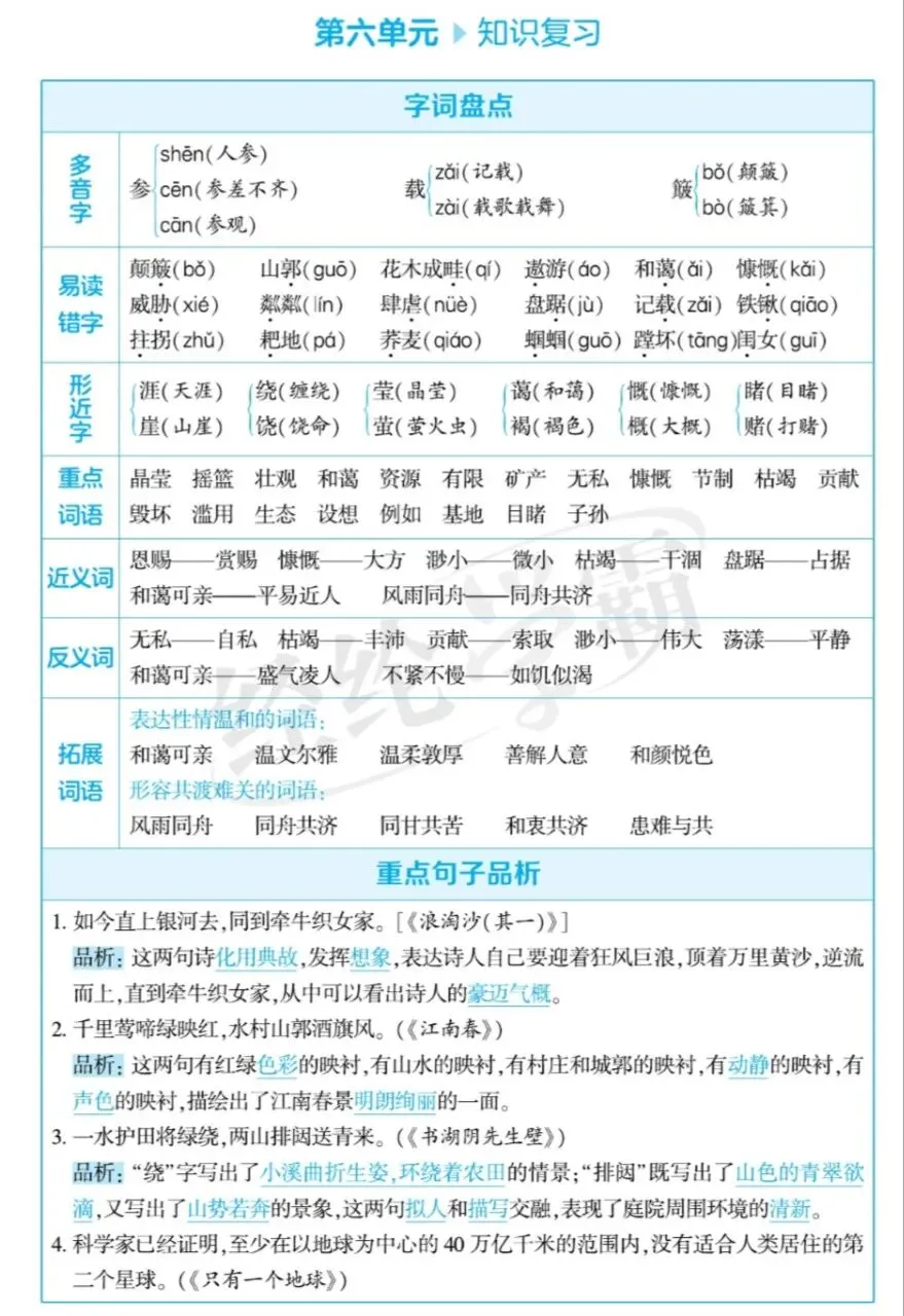 六年级语文上册第四单元学霸总结的考点