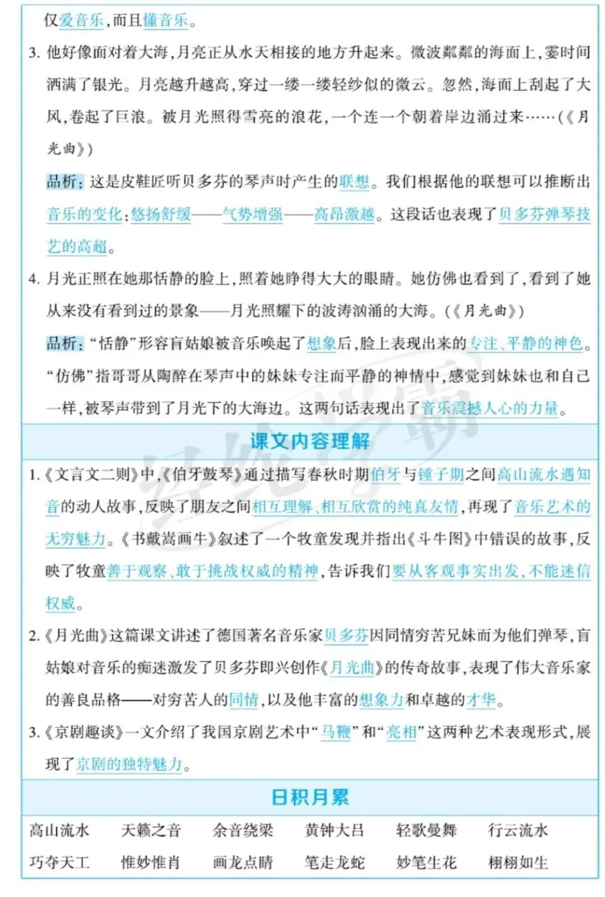 部编版六年级语文上册第22 课《月光曲》知识点
