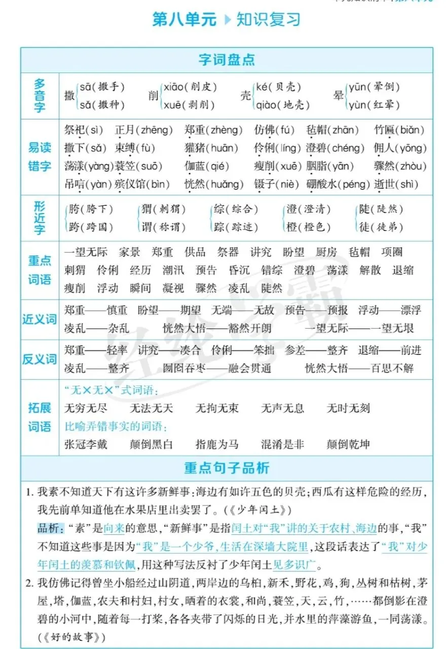 期末押题 | 八上语文期末考试划重点