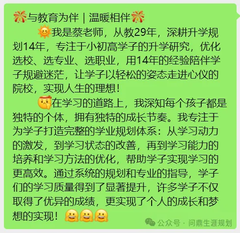 🔥2026高考时间已定!别只顾刷题,选对升学路径=多拿录取机会!强基、综评、专项等多路径适配不同分数段,提前规划才是关键👇⚠️ 核心提醒:特殊招生多比高考志愿早半年启动,错过报名窗口期即错失捷径,收藏备用!📌 高分段必冲(985/211目标)✅ 强基计划:聚焦基础学科,适合学科特长突出、意向科研的同学。3-4月简章发布,4月报名,高考后校测,校测占比30%-50%,需提前准备竞赛、科研经历。✅ 综合评价:2026年扩招加码,上纽/昆杜已报名,南科大新增甘肃名额。2-5月集中发简章,校测新增AI面试,需提前练英语逻辑。🎯 中等分数突围✅ 专项计划:面向贫困县、农村考生,最高降60分录985/211。4月报名(备户籍学籍证明),5月审核,仅限符合条件者,材料造假取消资格。✅ 提前批:含军事、公安、定向培养等,不影响普通批,多一次投档机会,适合职业方向明确者,部分定向院校免学费包就业。🫡 热血报国之选✅ 军警校:需政审、体检、体能达标,毕业入编稳定。高考后政审体检,要求16-20周岁、体质测试及格,分数达特殊类型控制线。✅ 定向培养:与单位签协议定向就业,适合求稳者,需了解服务年限与违约条款,部分享学费补贴。🌍 双保险:高考+留某学并行双轨对冲风险,成绩波动有退路!高一保GPA、积素材;高二攻语言(雅思6.0+/托福85+);高三上递申请、下冲高考,经历双向适配省精力。蔡老师:13708499154