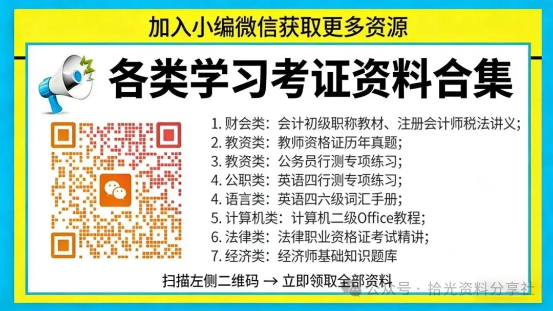 拾光后续会持续更新各类考试备考资料,关注我不迷路哦~