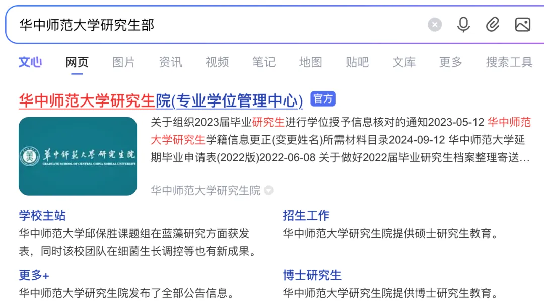 注意名称, 研究生院、研究生部、研究生处,每个学校的部门名称不同,但是都一类,就找到这个地方