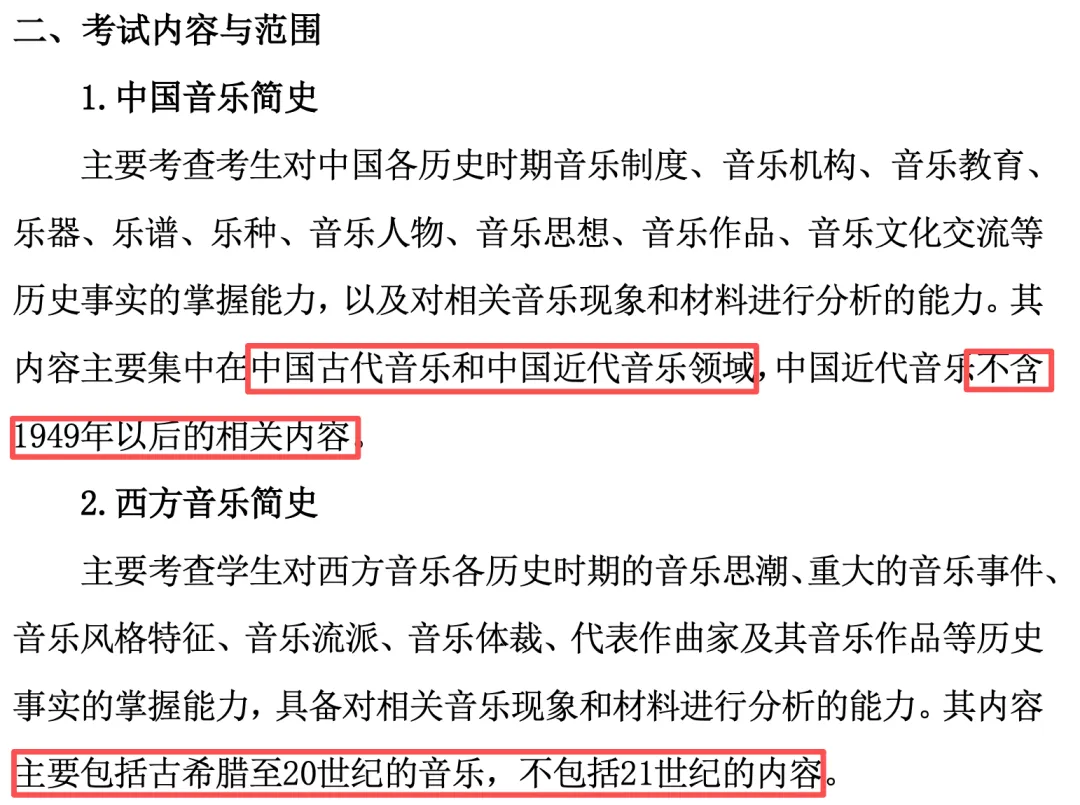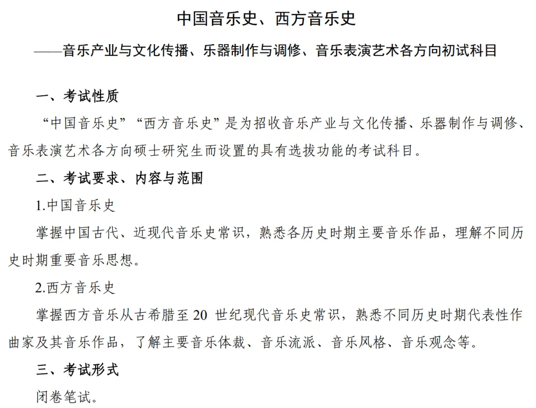 4.初试难度范围 | 中西史+和声曲式同大学本科难度 |