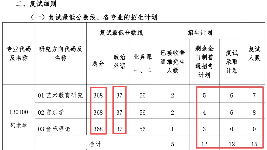 剩余名额:艺术教育5个、音乐学4个、音乐理论3个,总共要招12个人,比原来多3个