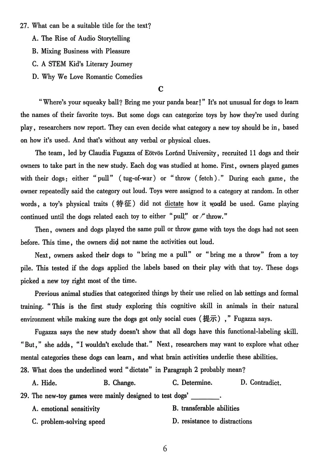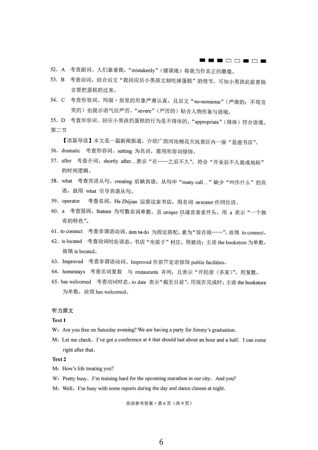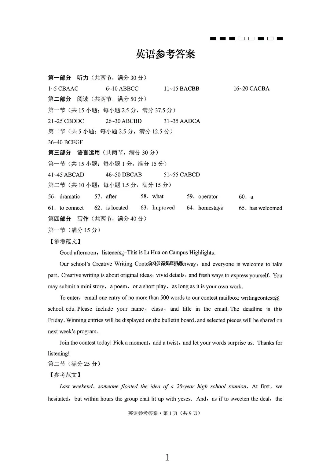 >2026届重庆市巴蜀中学高三1月一模考试(月考卷六)英语试卷和答案
