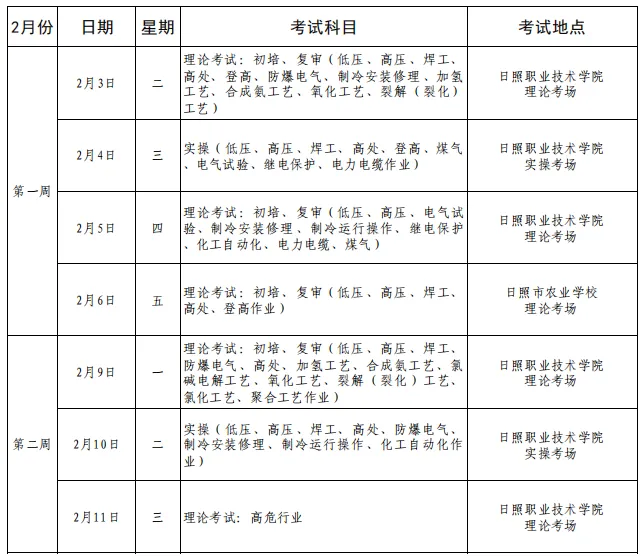 日照职业技术学院理论考场、实操考场地址:山东省日照市烟台北路16号日照职业技术学院;