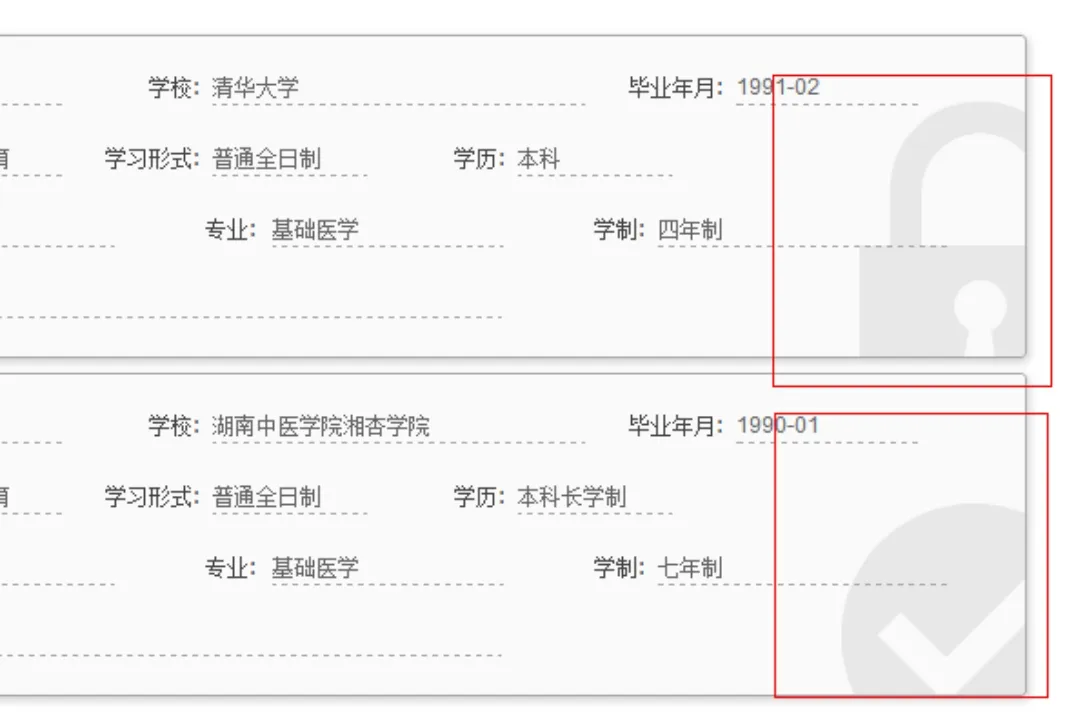 目前国家医学考试中心组织的所有考试均需要考生填报教育经历,针对医学考试加入了对「住院医师规范化培训」经历的信息收集要求。用户需要选择用于报考的教育经历和培训经历内容,勾选相关经历条目的左上角选择框完成选择。图示为选中教育经历和培训经历的效果,箭头所示为增补教育经历的操作按钮若在个人信息中没有完善相应的教育及培训经历,此处可以通过栏目标题右侧的“+”按钮进行添加。-以研究生学历报考的考生,除选择研究生一级的教育经历之外,还应补充相应本科/专科的教育经历情况(但不用勾选)。-当年毕业研究生可不用输入毕业证书编号(注意在工作情况一组的在岗情况中应选择“当年毕业研究生”),师承或确有专长者可不用填写毕业证书编号。-医考报名中除住院医师规范化培训类型的培训经历之外可不予勾选。-在此处新增教育/培训经历后,执行选择时,将提示先予以保存,保存完成后需要再次选择此条目。最终成功、报名成功最终以网上缴费为准