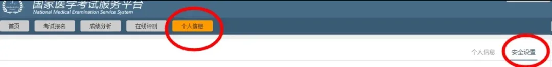 型图案表示有在报名申请中使用,对勾图案表示已得到验证- 输入的年月信息格式为YYYY-MM,中间需要加横杠。-在填写毕业学校时可通过输入拼音首字母的方式进行检索选择(如学校名称为北京大学,可直接输入bjdx后,约等5秒即可显示全部北京大学,由于网站收录的单位数据量较大,在拼音码检索过程中可能存在延时的情况,请耐心等待)。当鼠标从输入框中移开后,显示红色表示您未输入信息;显示灰色表示您选择的内容存在系统中并可以使用。-工作单位名称可以通过点击输入框后面的按钮来打开工作单位选择页,选取工作单位。-请按实际情况完整的填写教育经历、培训经历、证书情况。存在多项时(如同是拥有研究生和本科两项教育经历),请点击图标添加即可。需要删除时点击图标即可删除。-在输入过程中格式有误或者非空的项会以红色框方式表现出来。-注意在完成个人信息填报后必须点击“提交”按钮方可保存成功。2. 安全设置